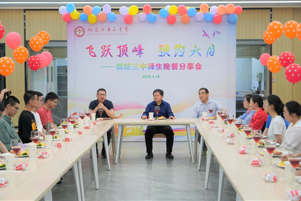 彩色气球、红色蜡烛、精美刀叉、佳肴点心……为爱赋能,助力高考,4月18日晚,我校举办“飞跃顶峰 预约六月——铜陵三中师生晚餐分享会”。