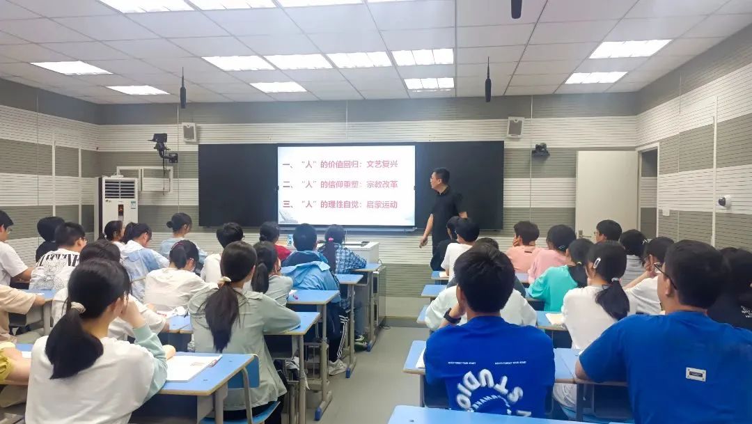 铜陵五中历史名师柯志强授课的课题是《欧洲的思想解放运动》。他以“近代欧洲是如何打破神权束缚和封建束缚,实现‘人’的解放”为教学立意,从 “‘人’的价值回归:文艺复兴”“‘人’的信仰重塑:宗教改革”“‘人’的理性自觉:启蒙运动”三个方面对教材内容进行解构,通过史料研读和问题探究,引导学生体验历史情境,理解“人文主义”的精神内核、“因信称义”的平等意识、“科学革命”的思维方式以及“启蒙时代”的理性力量,体会和感悟欧洲思想解放运动进程中的价值追求,深刻认识“思想解放是社会变革的先导”这一结论.