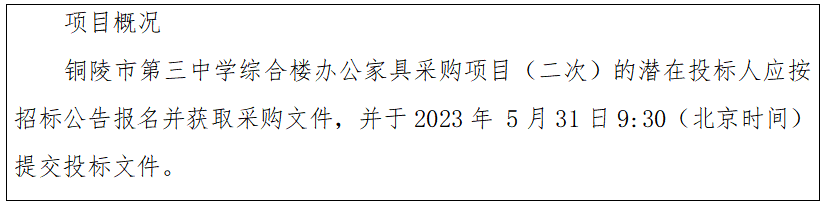 项目名称:铜陵市第三中学综合楼办公家具采购项目(二次)