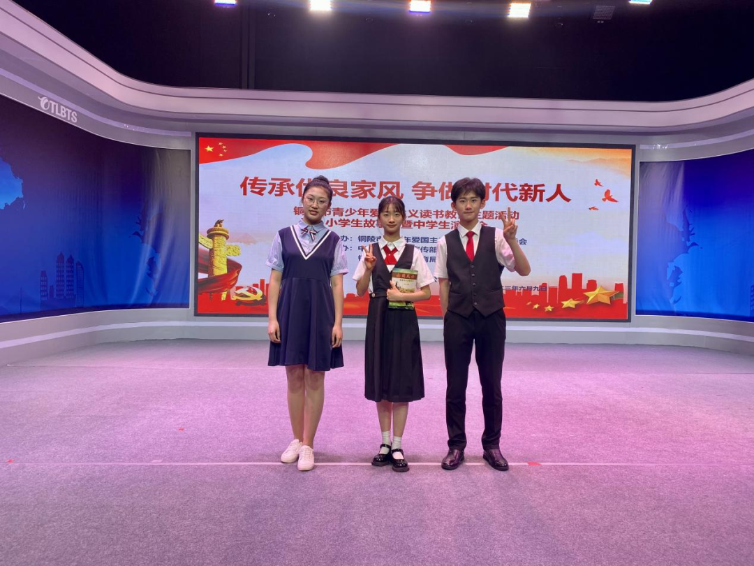 6月9日下午,“传承优良家风,争做时代新人”铜陵市青少年爱国主义读书教育主题活动·小学生故事会暨中学生演讲会在市广播电视台演播厅盛大举行。本次活动是由铜陵市青少年爱国主义读书教育活动组委会主办,由中共铜陵市委宣传部、铜陵市教育和体育局、铜陵市广播电视局、铜陵市新华书店有限公司共同承办。我校高二(12)班汪陶然同学、高一(15)班陈子安同学喜获演讲比赛二等奖,高二(15)班牛畅同学喜获演讲比赛三等奖。