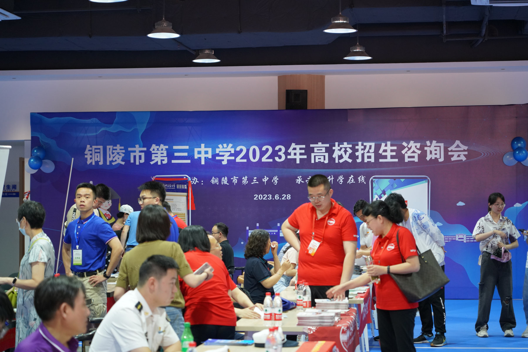 今天下午,铜陵三中人头攒动。全国70多所知名高校齐聚这里,举行“2023年铜陵三中高校招生现场咨询会”,上演一年一度的“抢人大战”。