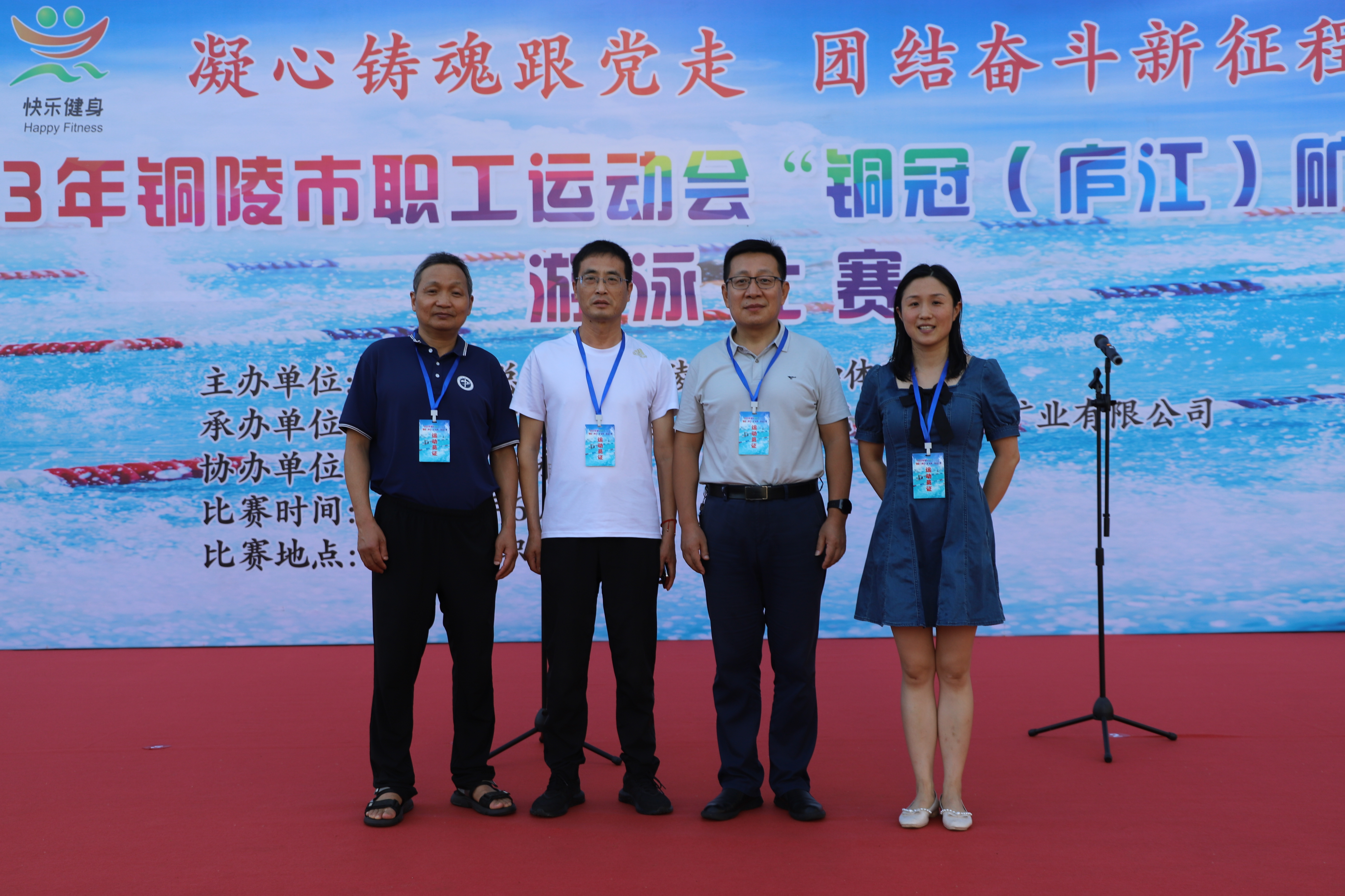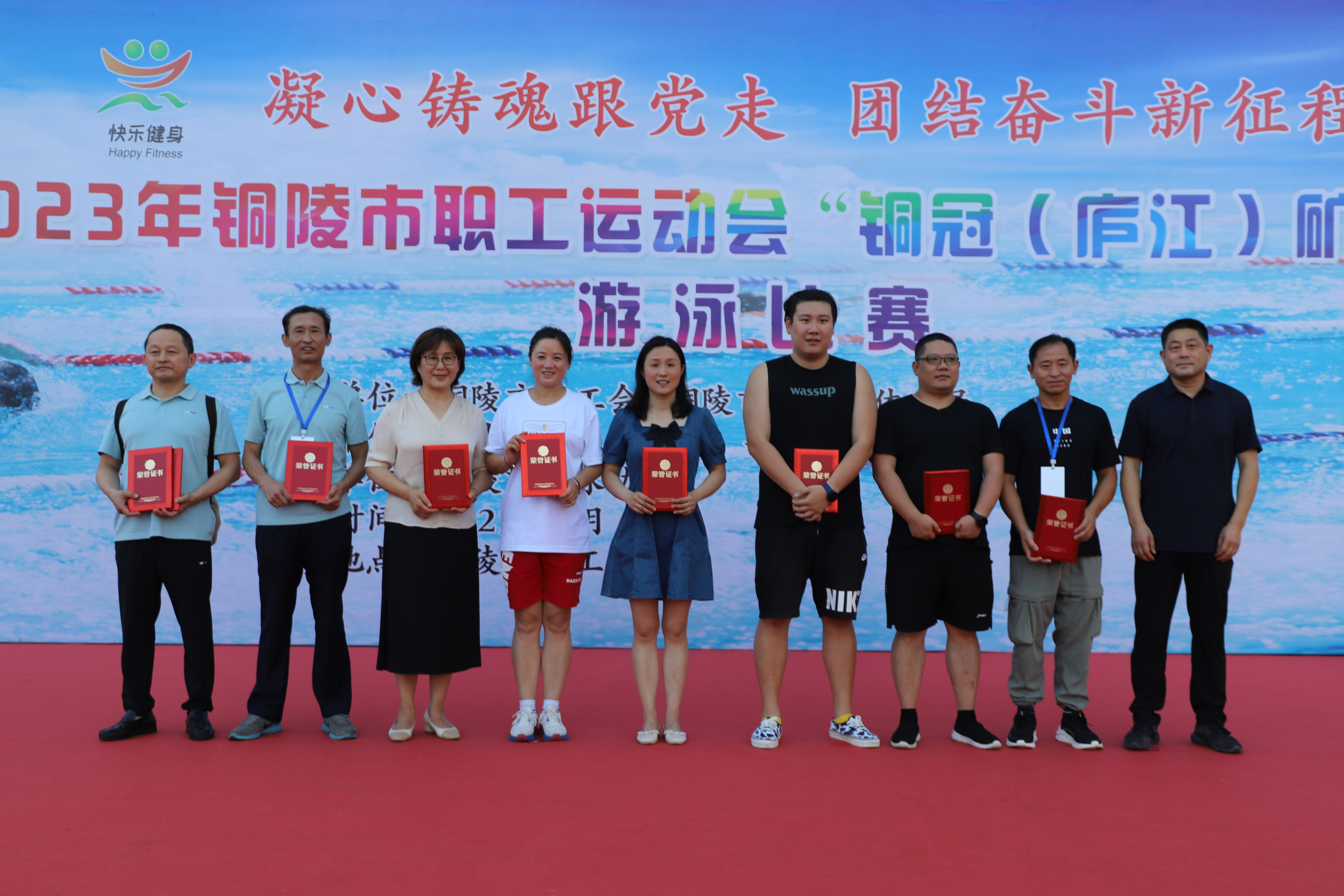 为深入学习贯彻党的二十大精神和习近平总书记关于体育工作的重要论述,充分展示我市职工体育运动水平, 6 月27~28日,市总工会在铜陵市工人文化宫游泳馆举办了 2023 年铜陵市职工运动会“铜冠(庐江)矿业杯”游泳比赛。我校选手徐松成、何书文、章诚、凌洁4位教师代表市教体局参加比赛,游泳专业凌洁老师荣获个人单项18-40岁组第二名、4×50米自由泳接力第三名。