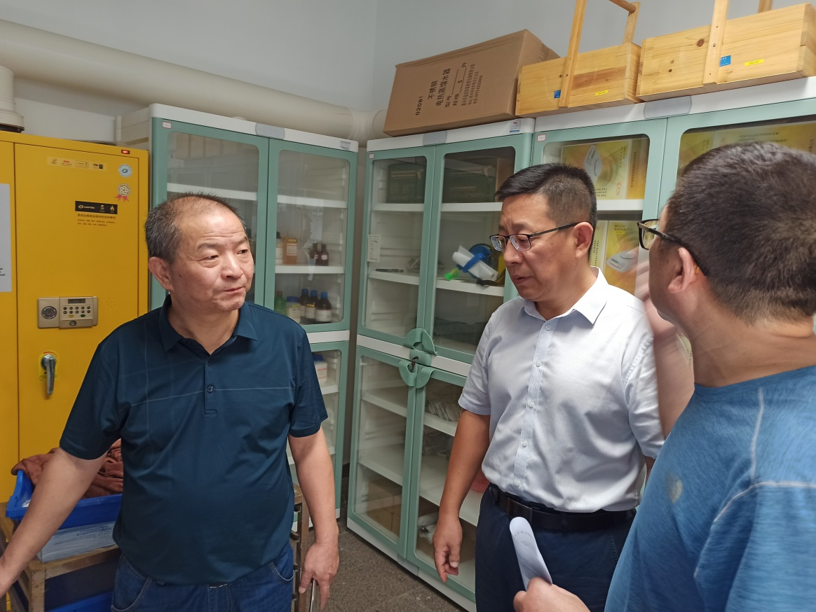 7月10号上午,我校徐松成校长带领教务处副主任江选安、实验室主任吴玲、安保科科长凌兴民以及各实验室负责人对各实验室的基础设施、药品、消防等进行了期末安全检查。