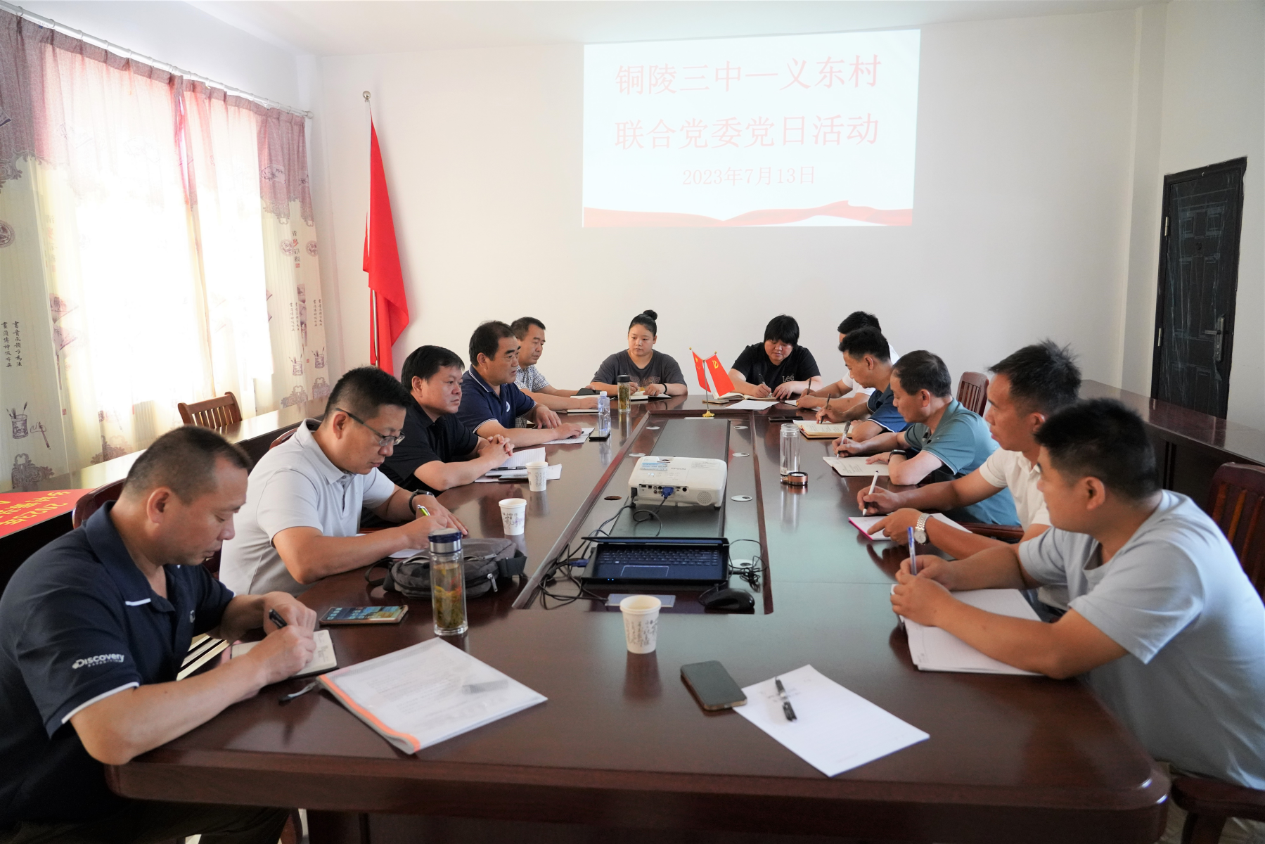 在义东村村委会,举行了铜陵三中——义东村联合党委党日活动。我校党委班子成员,义津镇人大主席胡金珠,义东村党委书记、村委会主任齐永龙等参加活动,活动由张国荣主持。