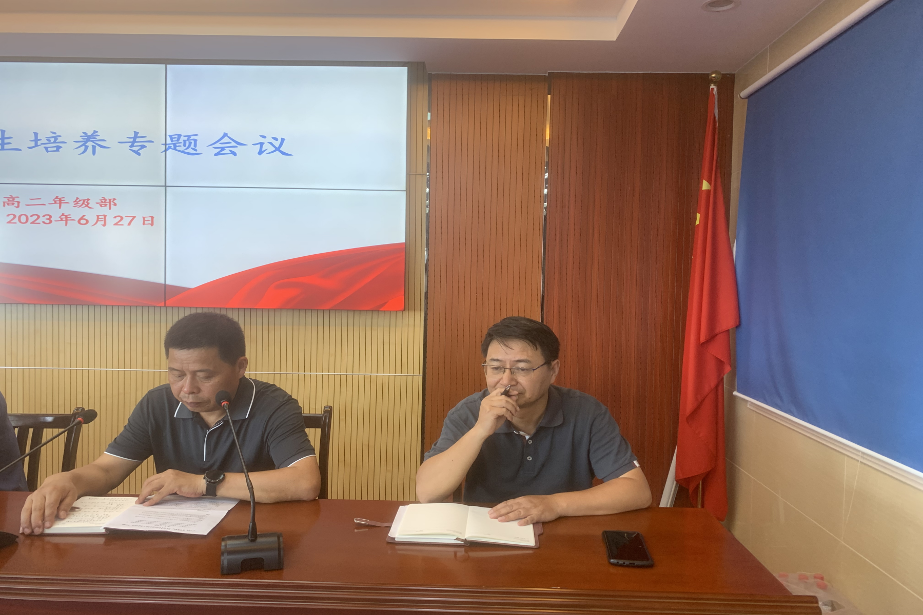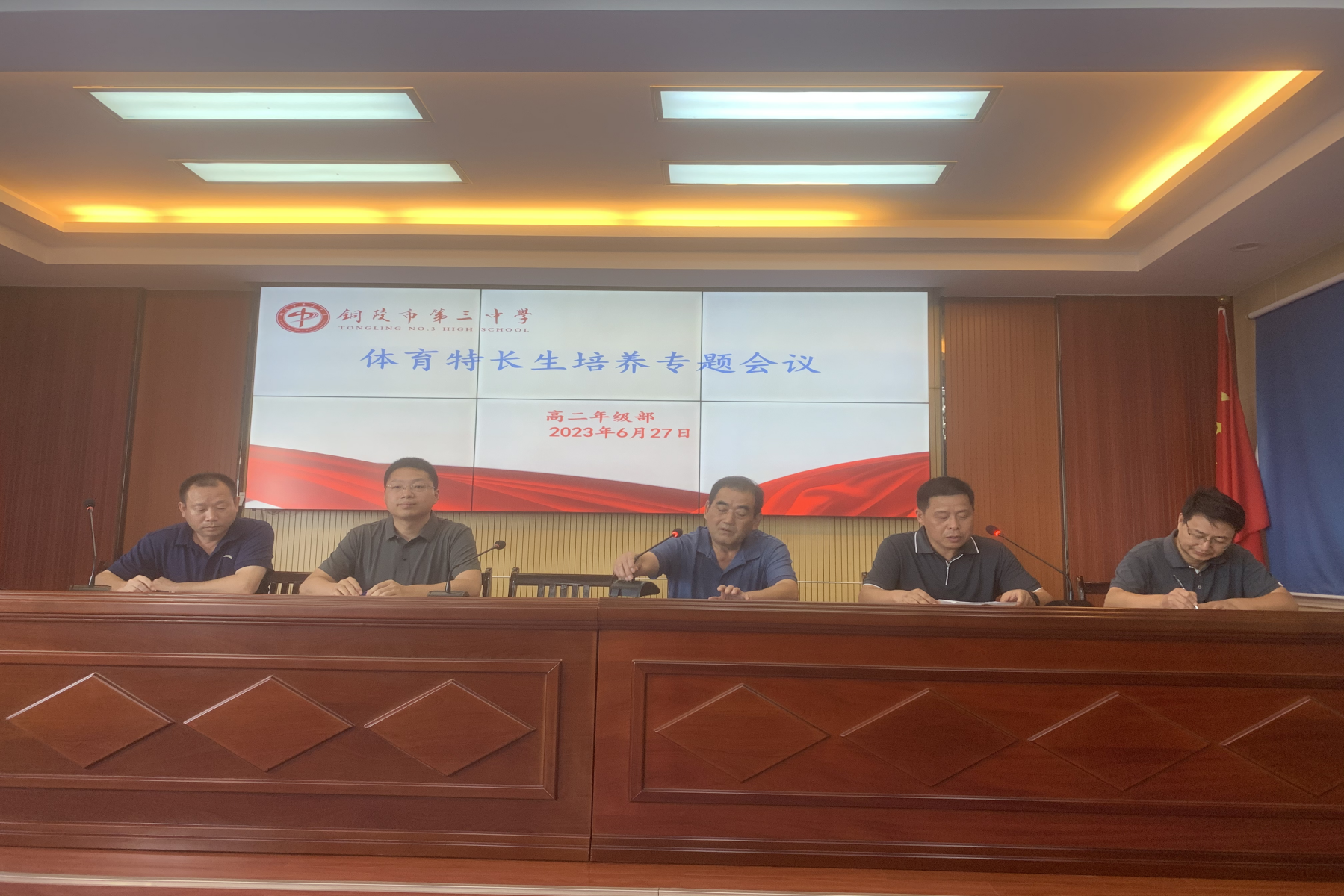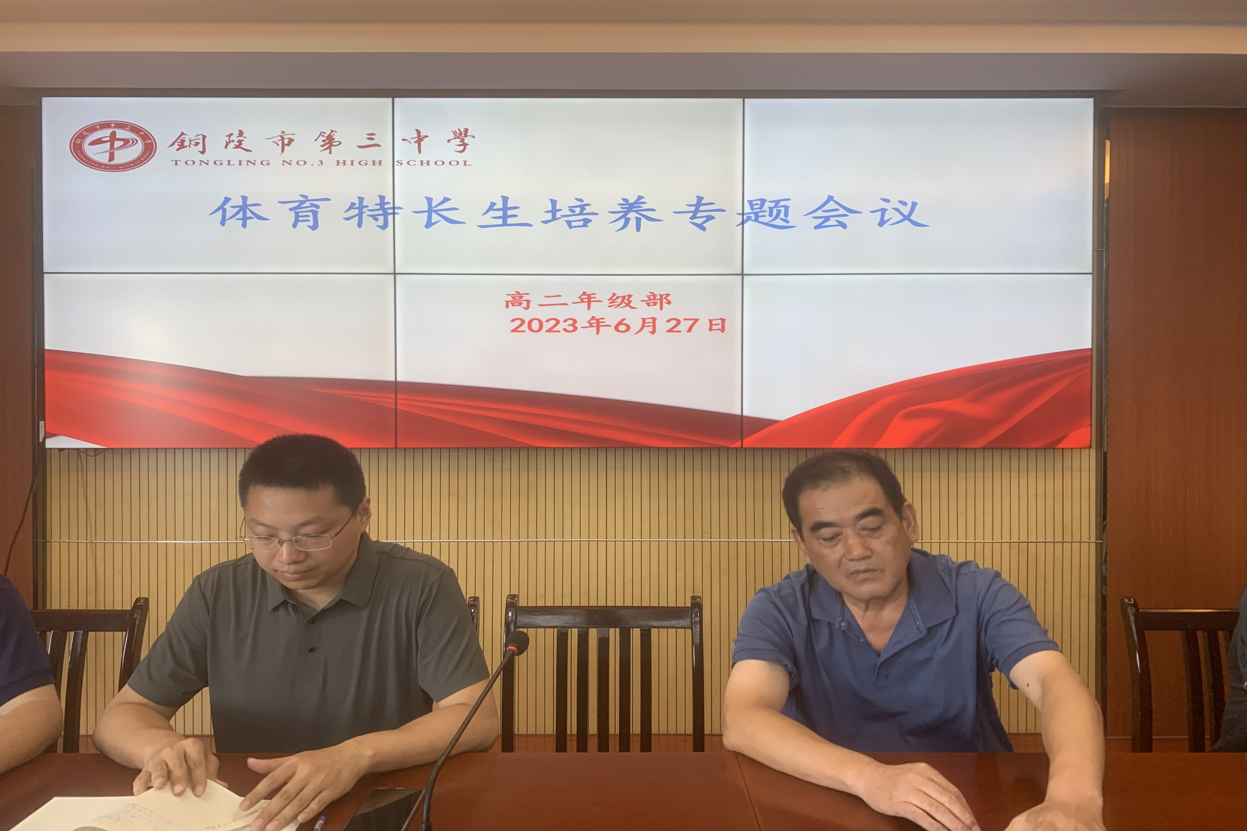 2023年6月27日下午,高二级部在躬行楼五楼会议室召开体育特长生专题会议,会议由德育部长朱海波老师主持,校党委副书记、级部分管校长张国荣,级部主任王俊朝,级部教学部长方进,总务处副主任、体育教练骆为,全体体育生、体育生家长和相关班级班主任参加了此次会议。