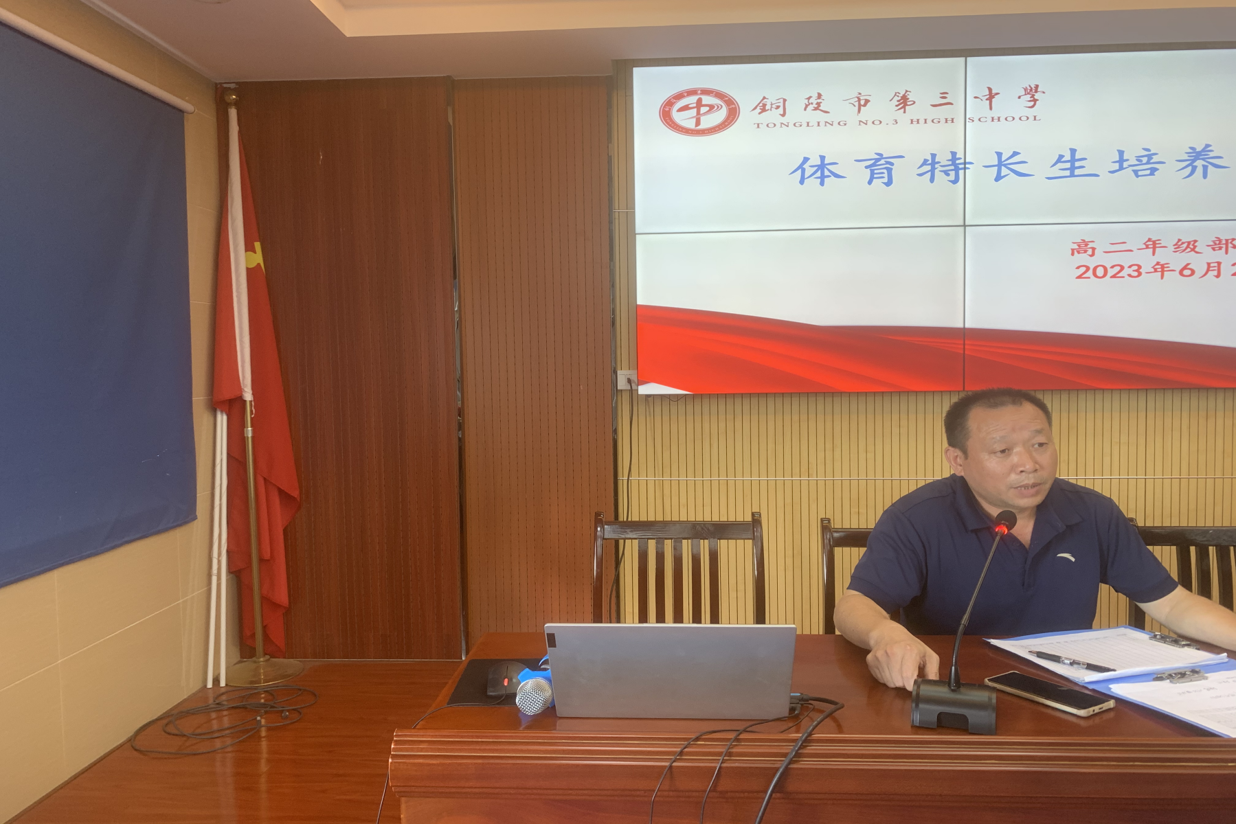 朱海波部长详细讲解了级部关于体育特长生培养及管理办法,如:仪容仪表要规范、按时上下课,以及其他一些规章制度。并着重强调特长生们要文化课和专业课同时兼顾,二者不可偏废,要做到“专项+文化”齐头并进,以期通过刻苦努力考上理想的院校。