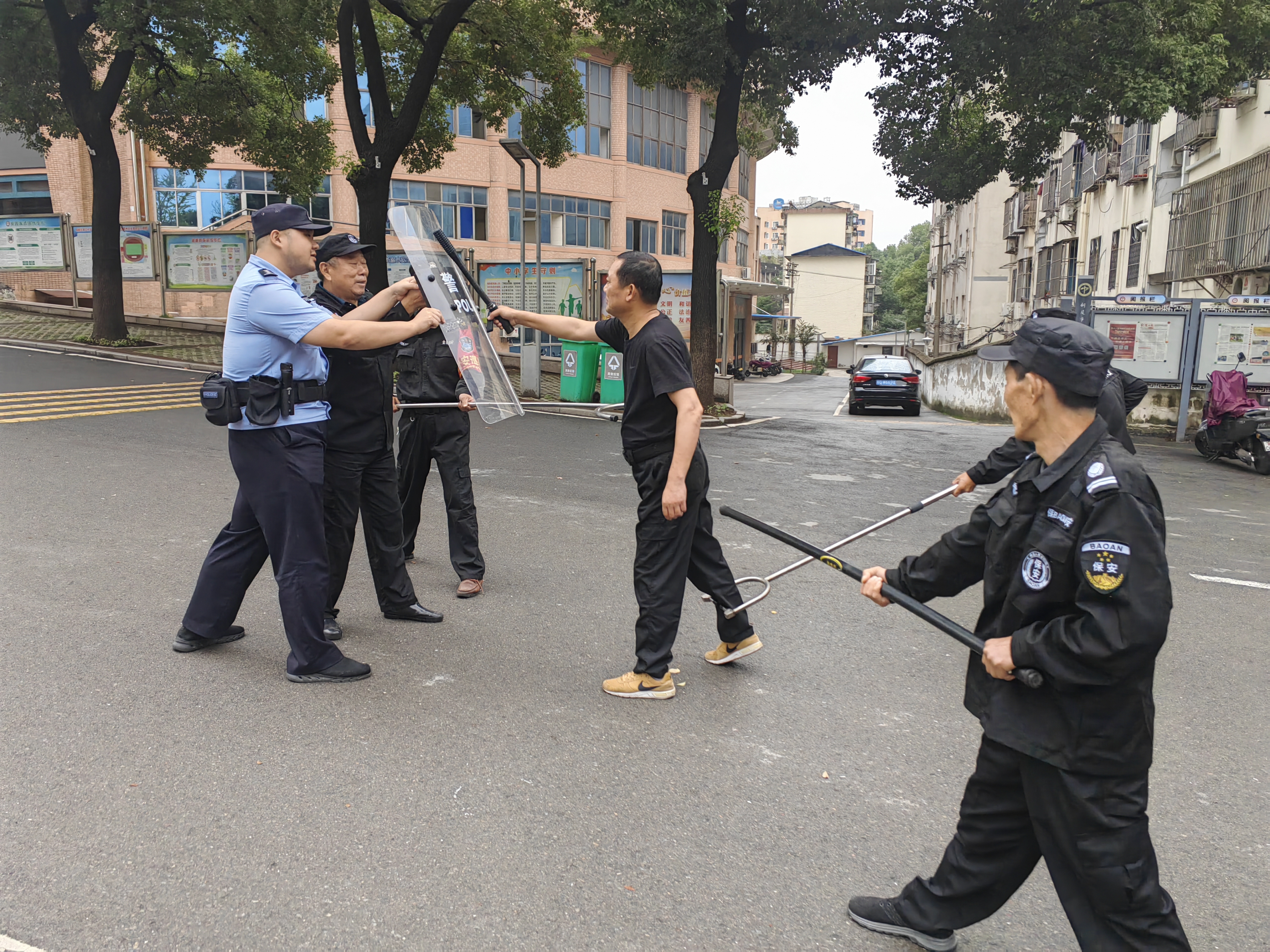 为进一步提升我校保安队伍应急处置能力,做好秋季开学安全工作,9月20日上午,长江路派出所周之杭警官来校指导开展第三季度反恐演练活动,保卫科及全体保安参加了演练活动。