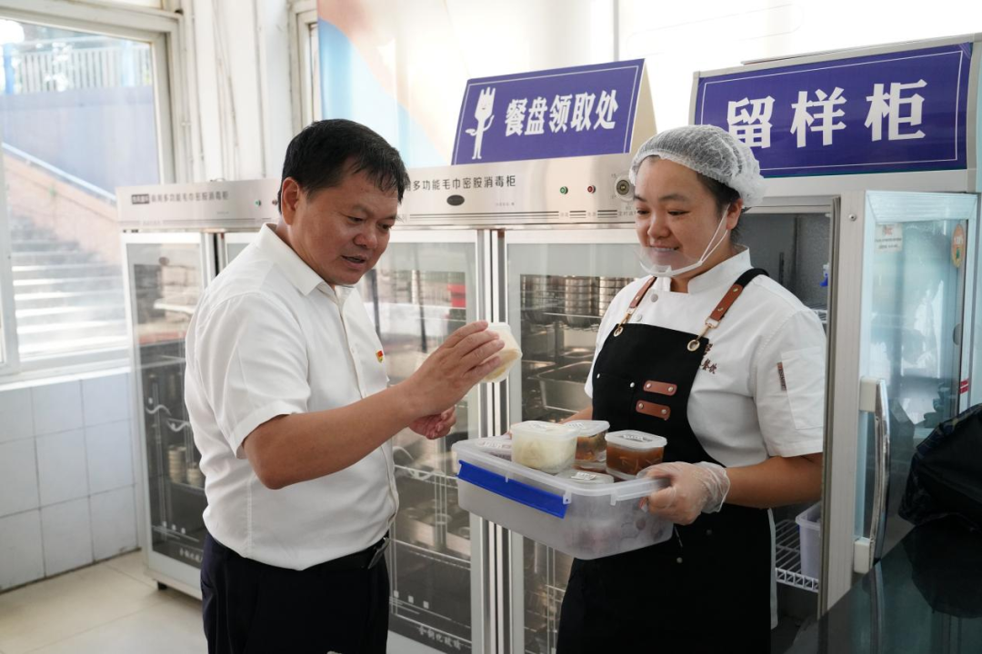 检查的第二站是食堂,食堂是师生用餐的重要场所,食品安全和环境卫生至关重要。学校在这次排查中聚焦于检查食堂的食品储存、处理、餐具消毒以及食材的留样采购等方面,王校长对食堂的经营提出了明确的要求,学校食堂安全管理员要加强对食堂的监管,做好明厨亮灶工作,定期不定期开展食品卫生检查督促,确保食品的质量和安全。