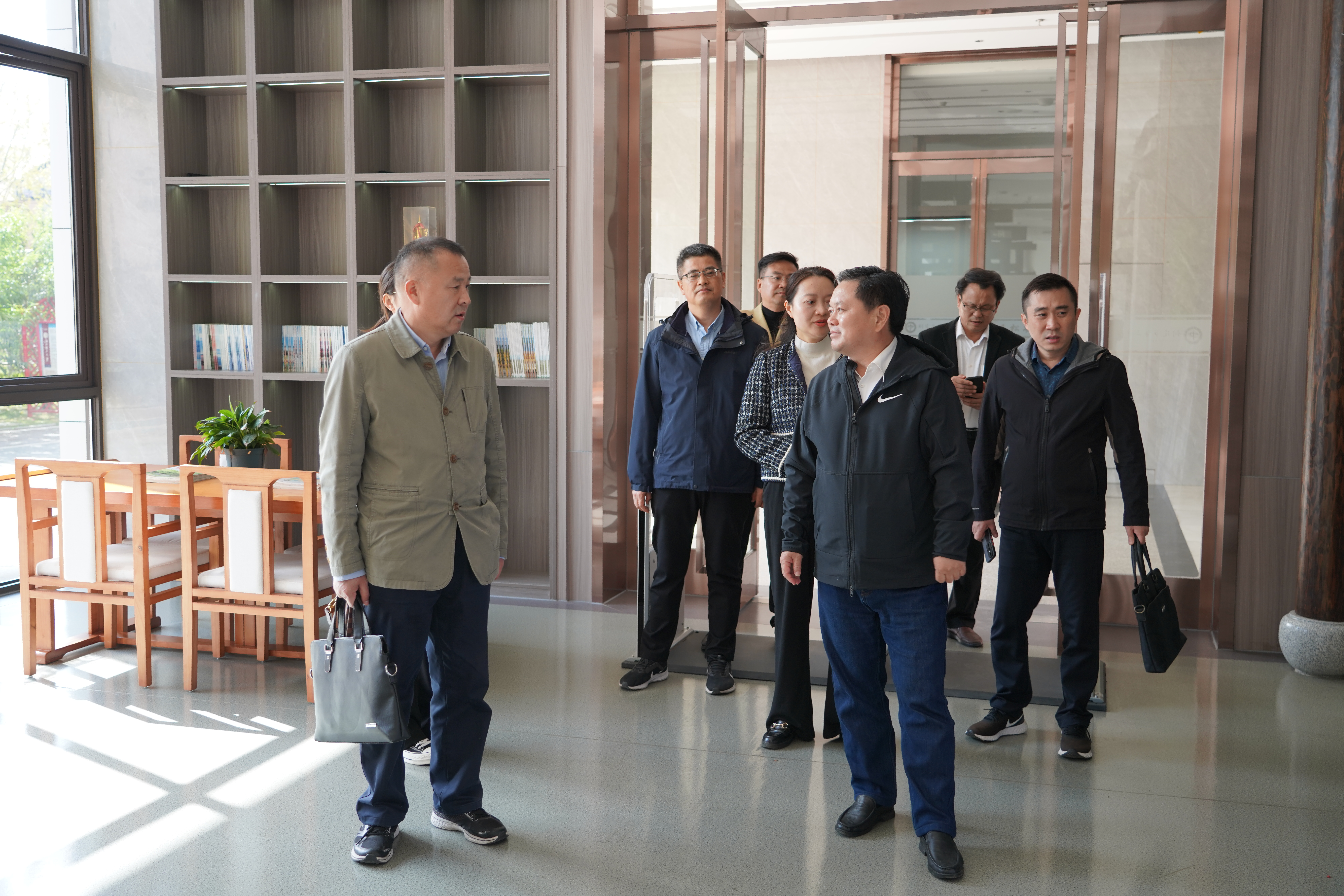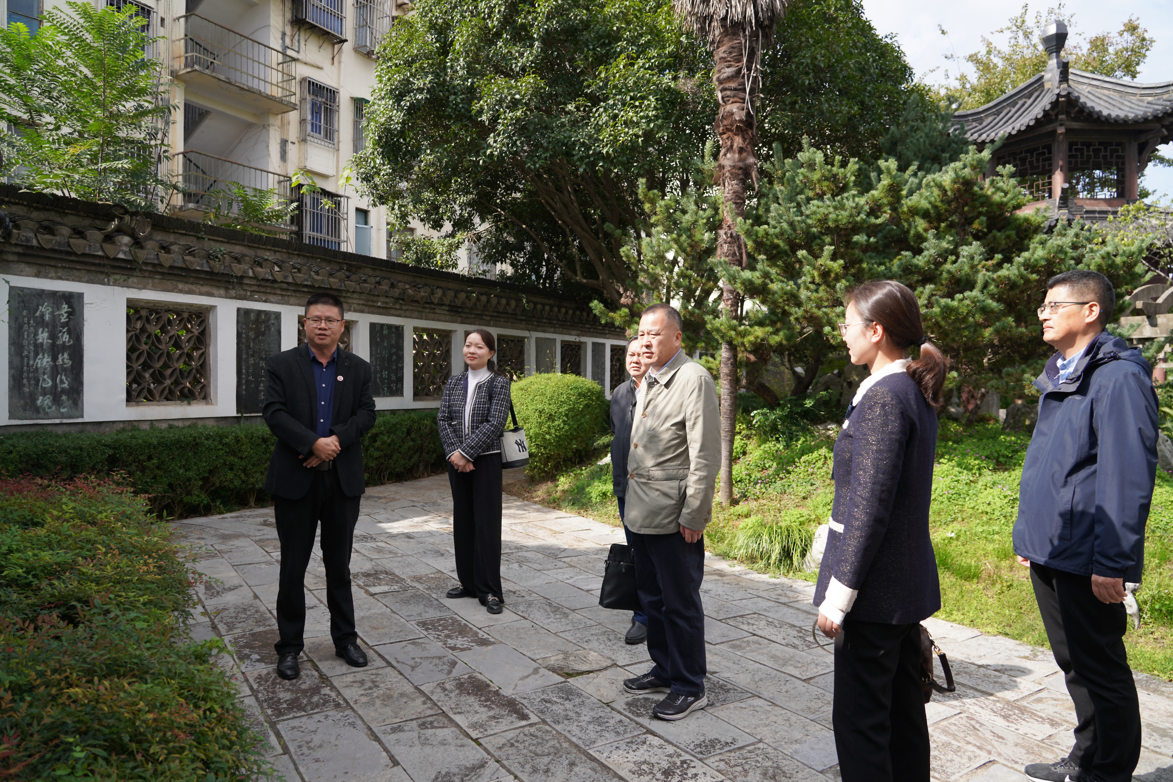 调研组一行先后考察了我校师生健身中心、食堂、学生宿管中心、医务室、植物园、五松山文化碑廊、学生劳动实践基地、五松书院、黄百新书画馆等场地,了解了我校在教育教学基础设施和创新教育方面的实践成果。