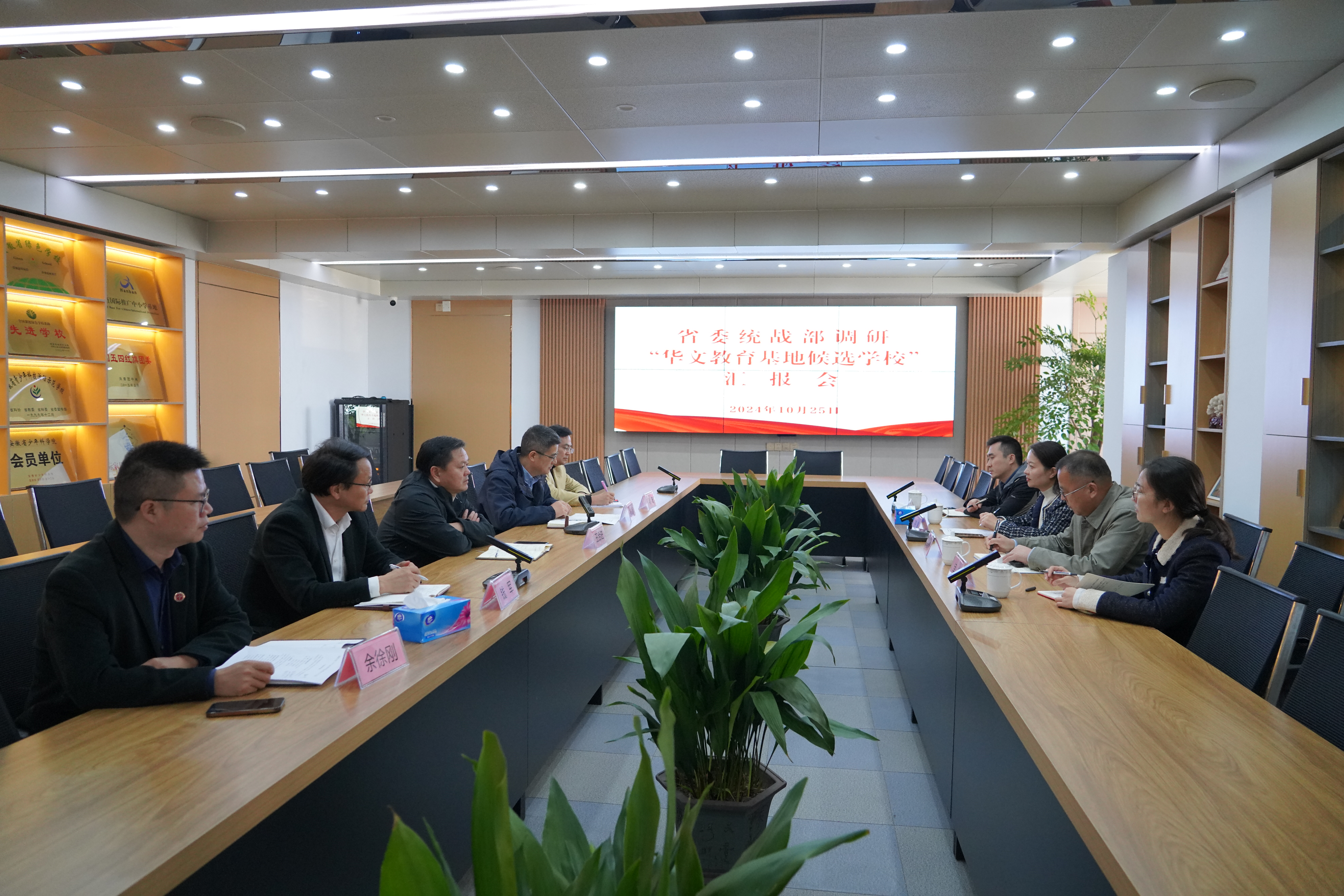 在调研汇报会上,校党委书记王合进对省委统战部来校考察表示欢迎,介绍了学校的办学特色与国际交流情况。王合进表示,学校将以此次申报考察为契机,不断完善华文教育基地的各项基础建设工作,力争早日成为省级华文教育基地。