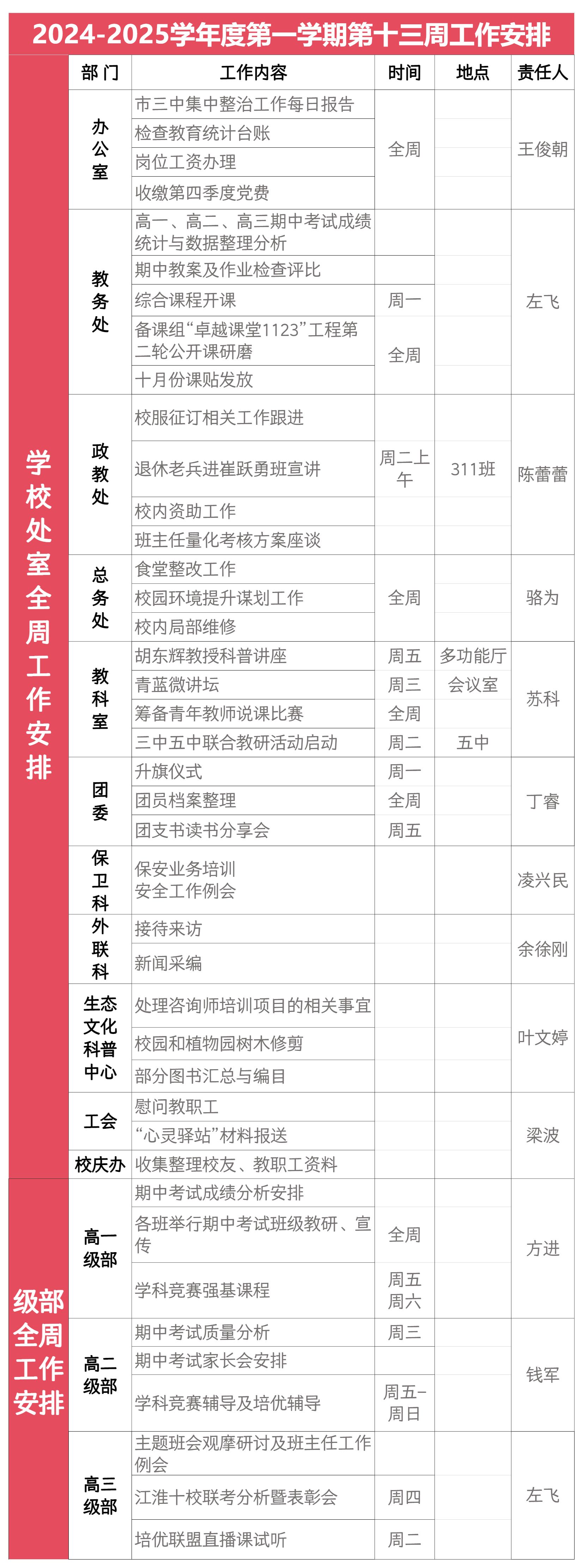 铜陵市第三中学2024-2025学年度第一学期第十三周工作安排