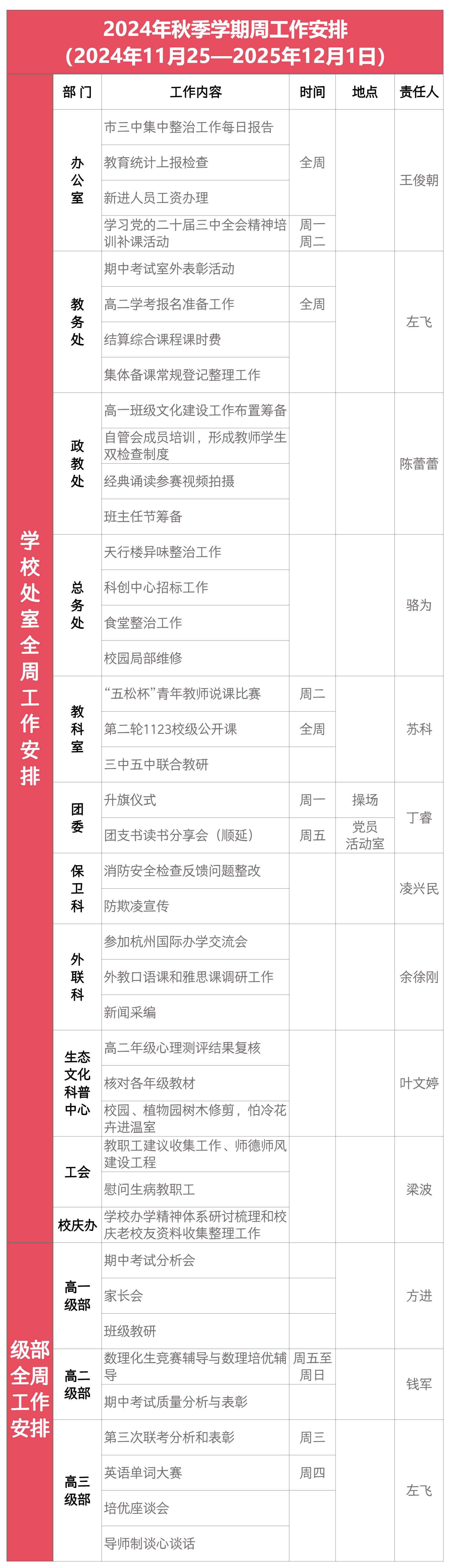 铜陵三中2024年秋季学期周工作安排(2024年11月25-2025年12月1日)