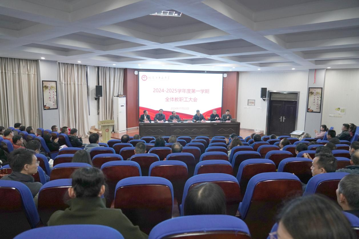 11月22日下午,我校在多功能报告厅召开全体教职工会议,校领导班子成员及全体教职工参加大会。会议由党委副书记、校长张尤俊主持。