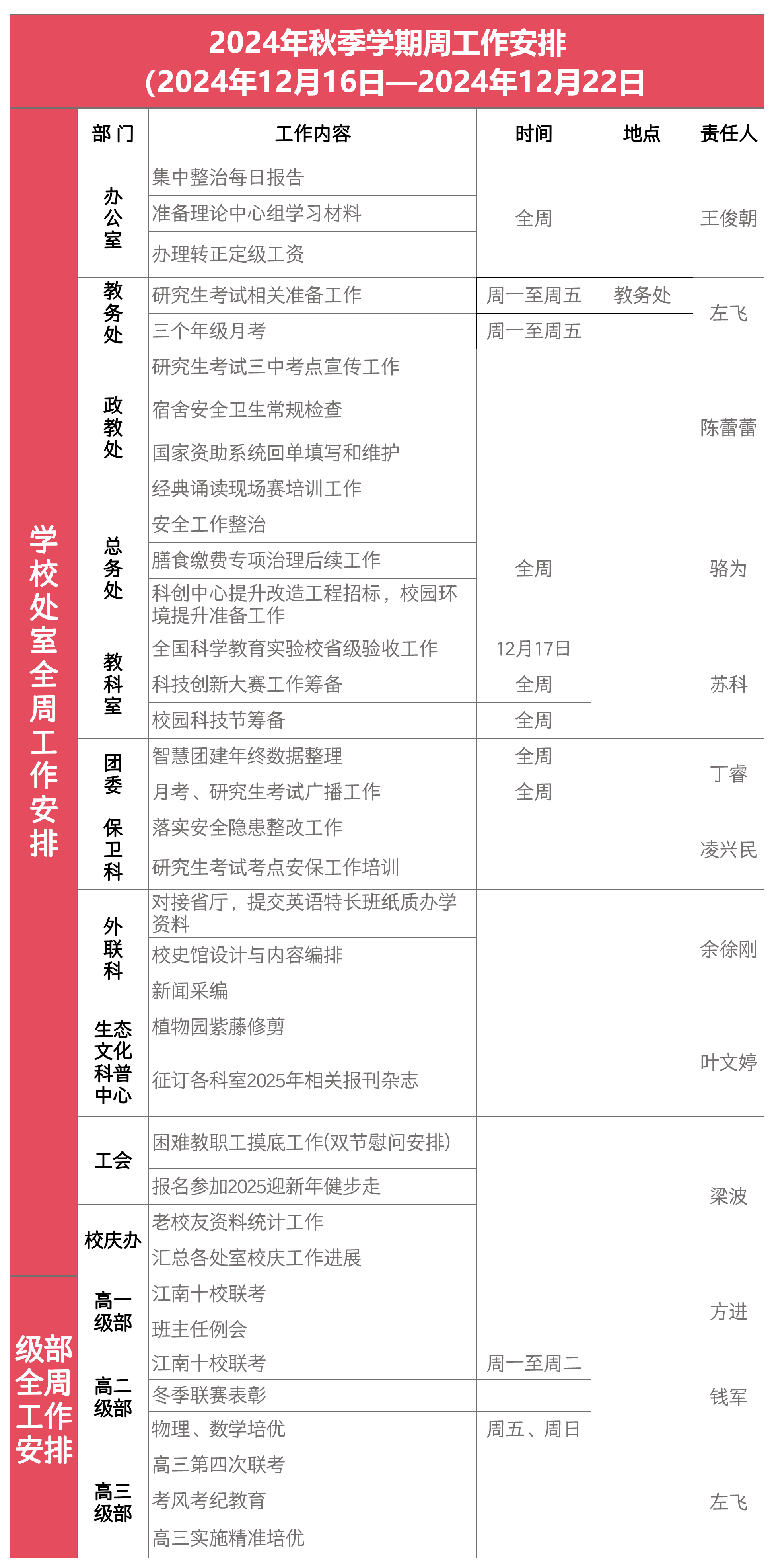 铜陵三中2024年秋季学期周工作安排(2024年12月16日-2024年12月22日)