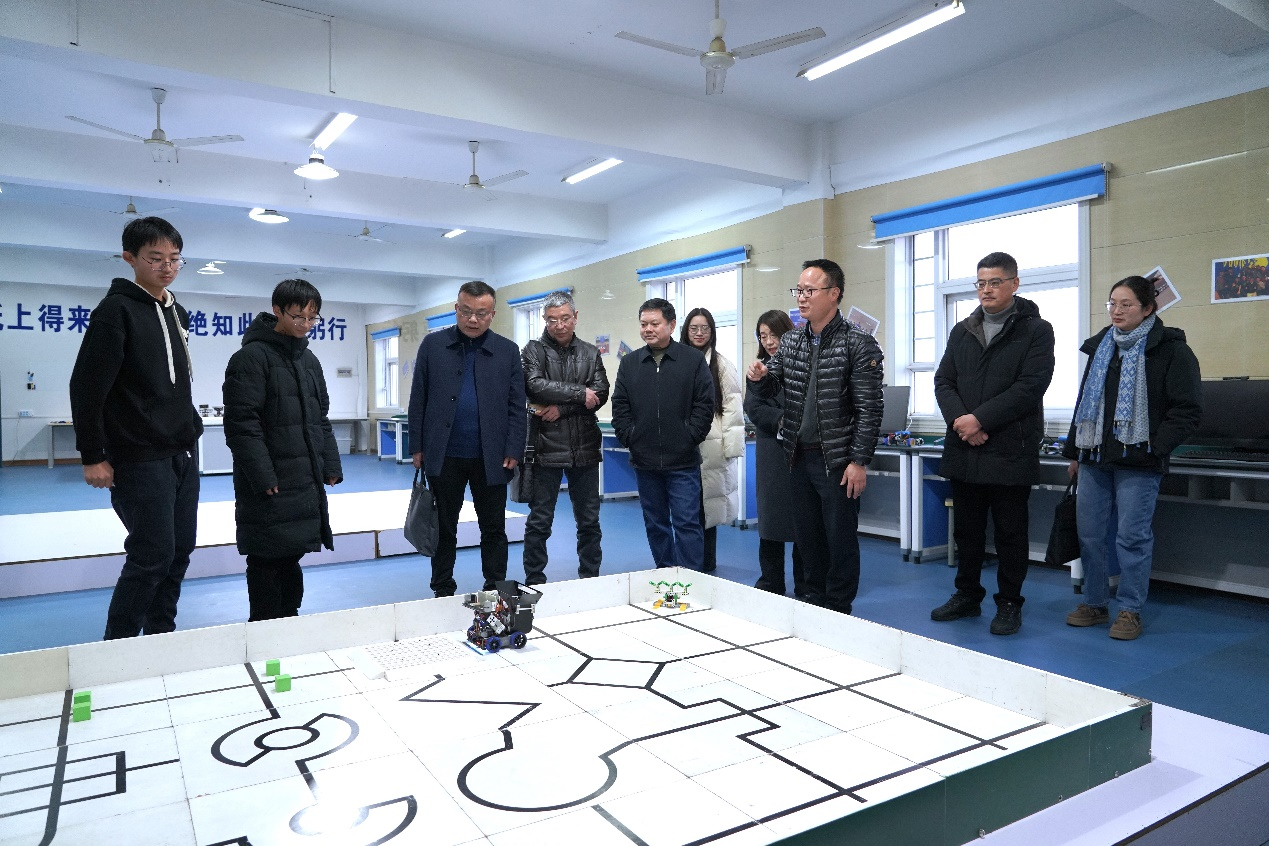 12月17日下午,安徽省教育厅科学教育专家组程波,程斌,丁晓艳,梁婉柳一行来我校考察指导。市教育和体育局总督学胡瑛,铜陵三中党委书记王合进,党委副书记、校长张尤俊,市教育和体育局职成教科科长殷义猛,党委委员、教务主任钱军等陪同。专家组一行考察和调研了五松山文化碑廊、三中植物园、生态馆、沙画教室、生物组培实验室、3D打印教室、机器人实验室等科学教育场所,并兴致勃勃地参观了三中科技社团作品展览。