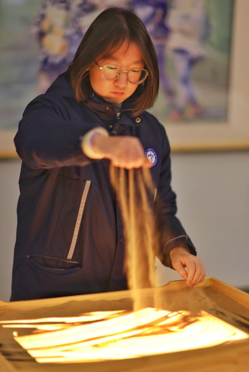 沙画教育在铜陵三中的推广和实践,是学校艺术教育创新的一个缩影。铜陵三中艺术组结合思政、语文、心理、音乐美术等各个学科,开展了跨学科探讨和实践活动,让学生在实践中学习,在体验中成长。这种教育模式有效地提升了学生的创新能力和审美情趣,同时也增强了他们对国家和民族的认同感。