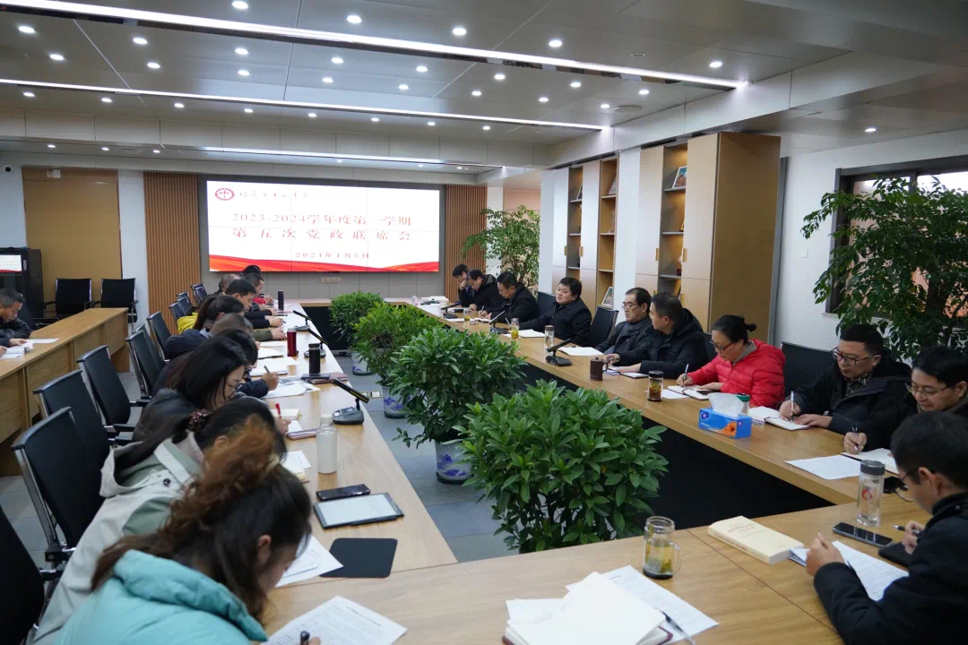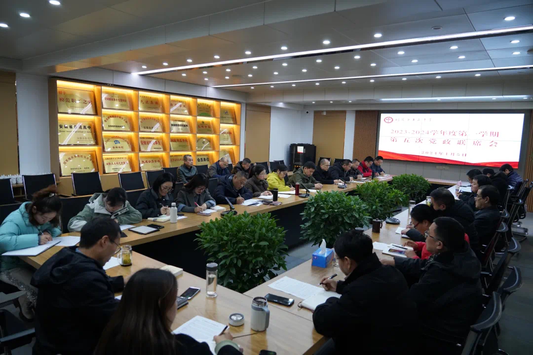 谋划而后动,笃行以致远。2024年元月5日下午,我校在行政楼五楼第一会议室召开本学期第五次党政联席会,学校全体校领导、中层干部、年级部长齐聚一堂,大家畅谈明年工作计划和目标任务,压紧压实各项工作责任,共谋学校品质发展。会议特别邀请了民主党派人士周贤良、高令乐、乔红胜三位老师旁听,校党委副书记、副校长王合进主持会议。