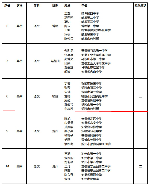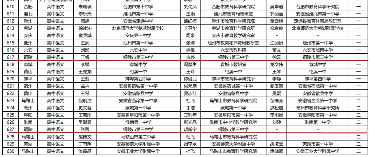 近日,2023年安徽省中小学优质课评选结果公示。我校语文组丁睿、张蓉老师分获个人赛一、二等奖,其中张蓉老师获二等奖(说课)第一名;两位老师所在团队荣获团体赛二等奖(第一名)。