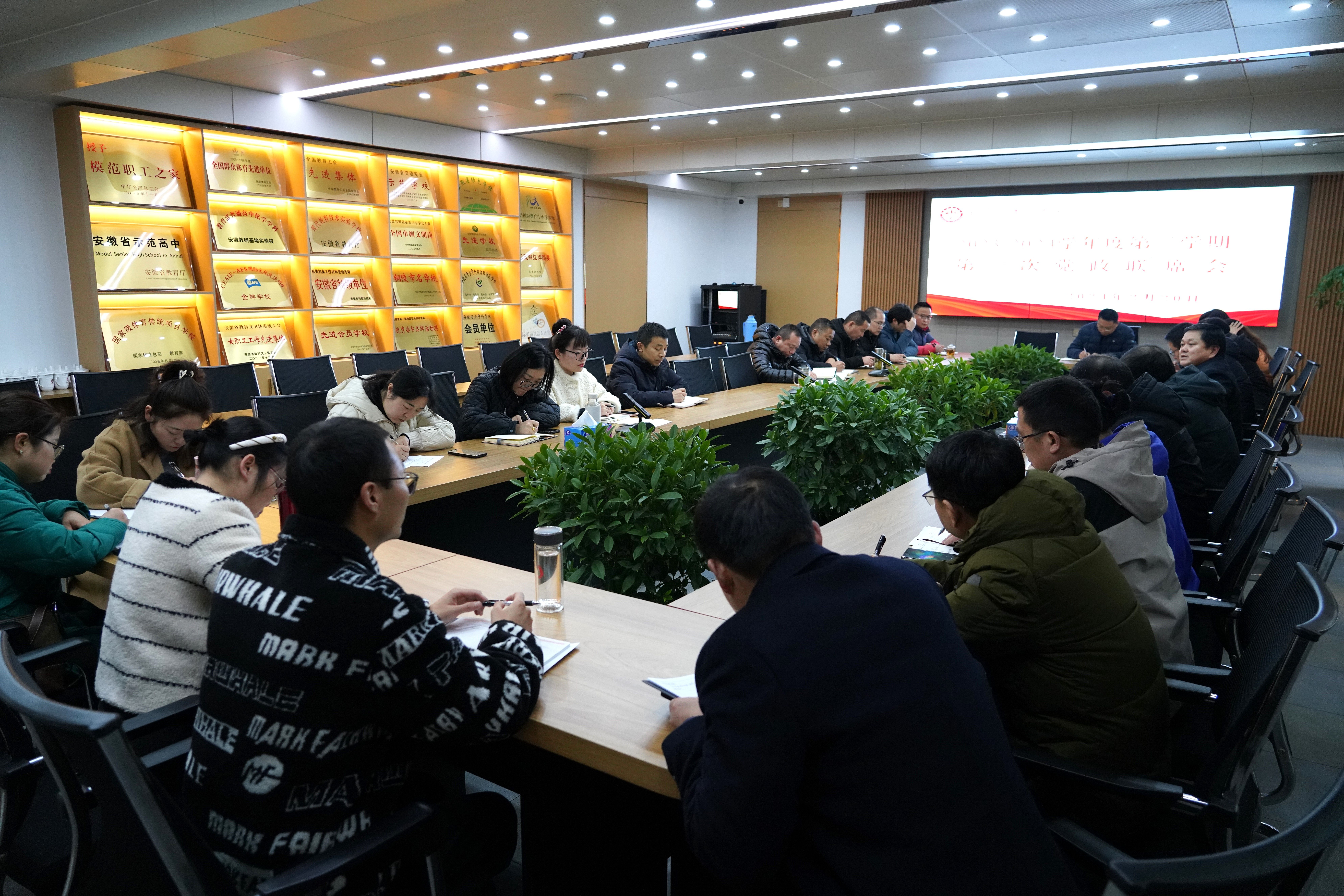 理清思路开新局,踔厉奋发续华章。2月20日下午,铜陵三中2023——2024学年度第二学期第一次党政联席会在行政楼五楼第一会议室召开,校党委副书记、副校长王合进,党委副书记张国荣,党委委员、副校长徐松成,党委委员、副校长章学标出席会议,全体中层干部和三个年级领导及党支部书记参加会议,王合进主持会议。