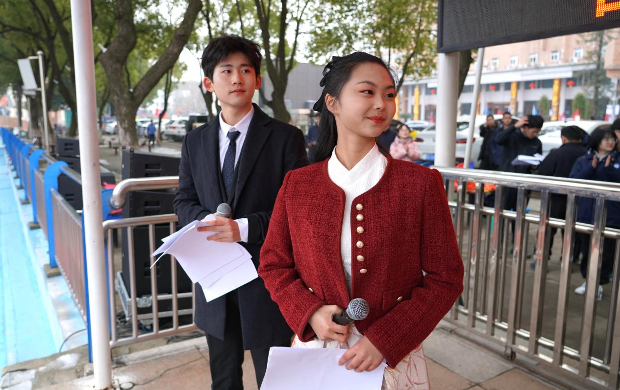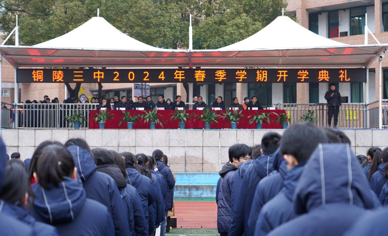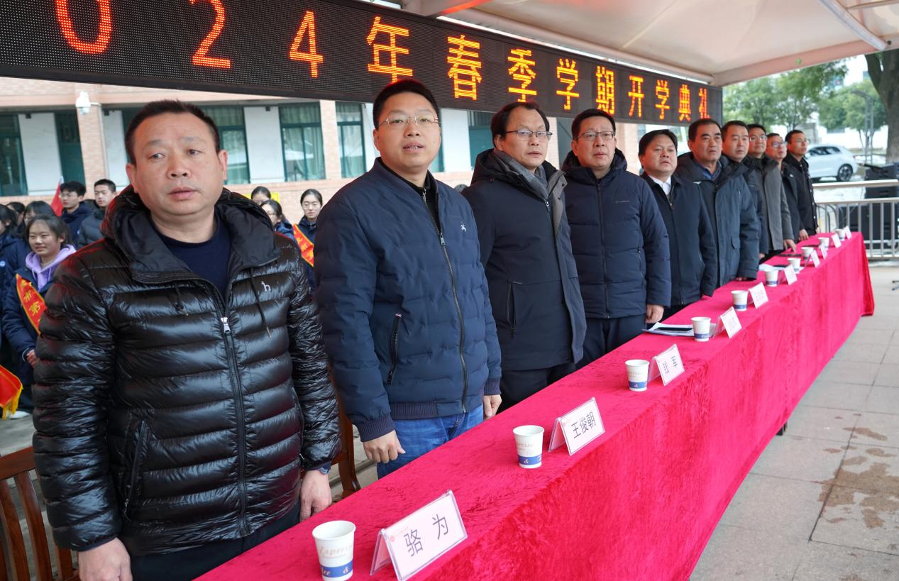 龙年祥瑞岁时新,春回大地万物欢。2月26日上午,我校在操场隆重举行以“春来征程万里阔,蓄力前行向未来”为主题的2024年春季开学典礼,师生欢聚,共赴新征程。校党委副书记、副校长王合进,党委副书记张国荣,党委委员、副校长徐松成,党委委员、副校长章学标,各年级主任,处室负责人出席活动。典礼由陈子安、刘忆萌同学主持。