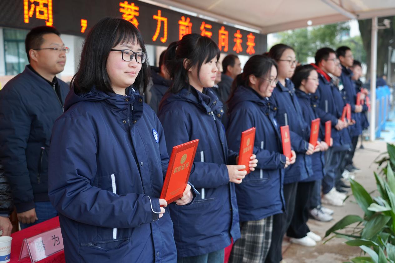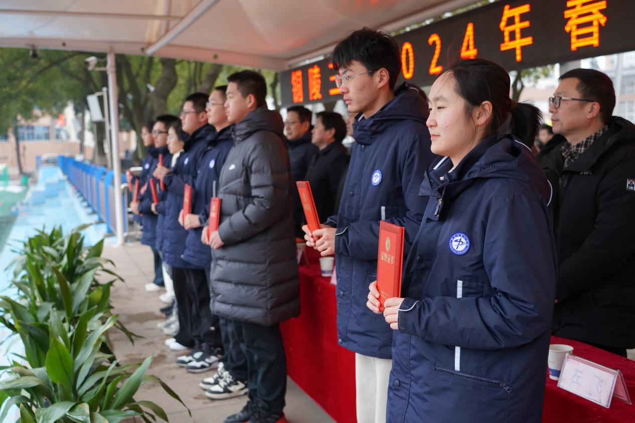 首先,在上学期期末联考中取得优异成绩的各年级“学业之星”、优秀学生干部、“五好学生”上台接受表彰。校党委委员、副校长徐松成,校党委委员、副校长章学标宣读获奖名单。榜样引领促进步,希望全体同学以受表彰的同学为标杆,努力拼搏、奋勇直追,迎头赶上!