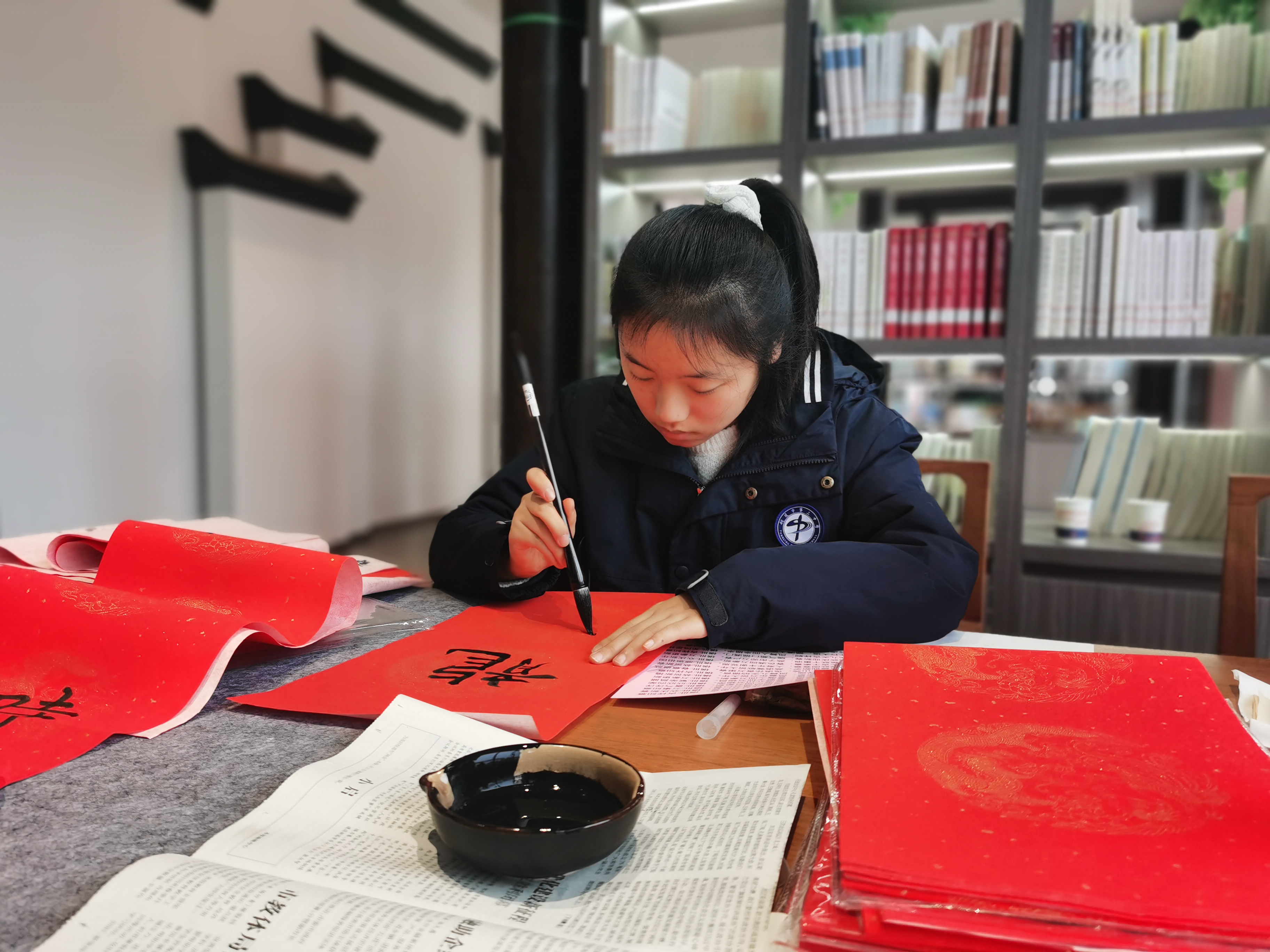 在2024年春节即将来临之际,为弘扬中华民族优秀传统文化——书法的魅力,营造浓郁的校园节日文化氛围,校工会联合政教处和生态文化科普中心,组织部分师生开展了2024年春节“写春联,送祝福”活动,校党委副书记张国荣、校工会主席梁波等现场观摩指导。