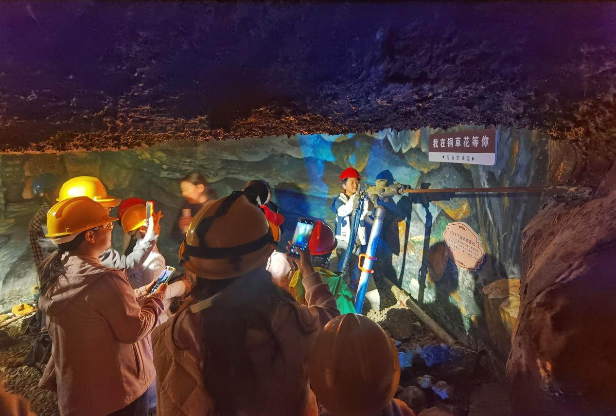 铜草花基地的铜文化体验园是铜文化实践教育基地,再现“炉火照天地,红星乱紫烟”的壮观冶炼场面,突出现代铜都的资源合理利用。女教职工们在基地体验找矿、采矿、冶矿场景,收获满满。