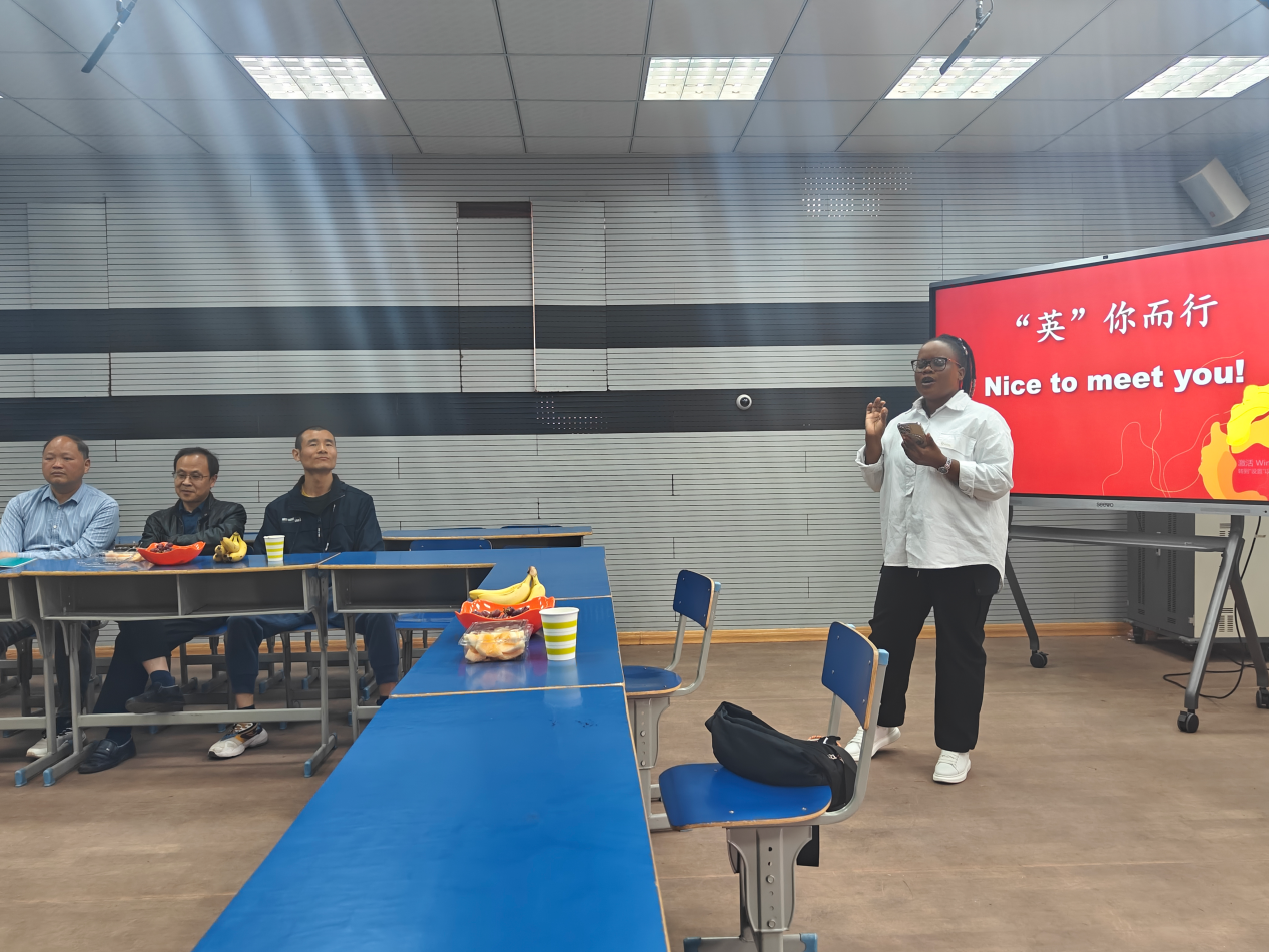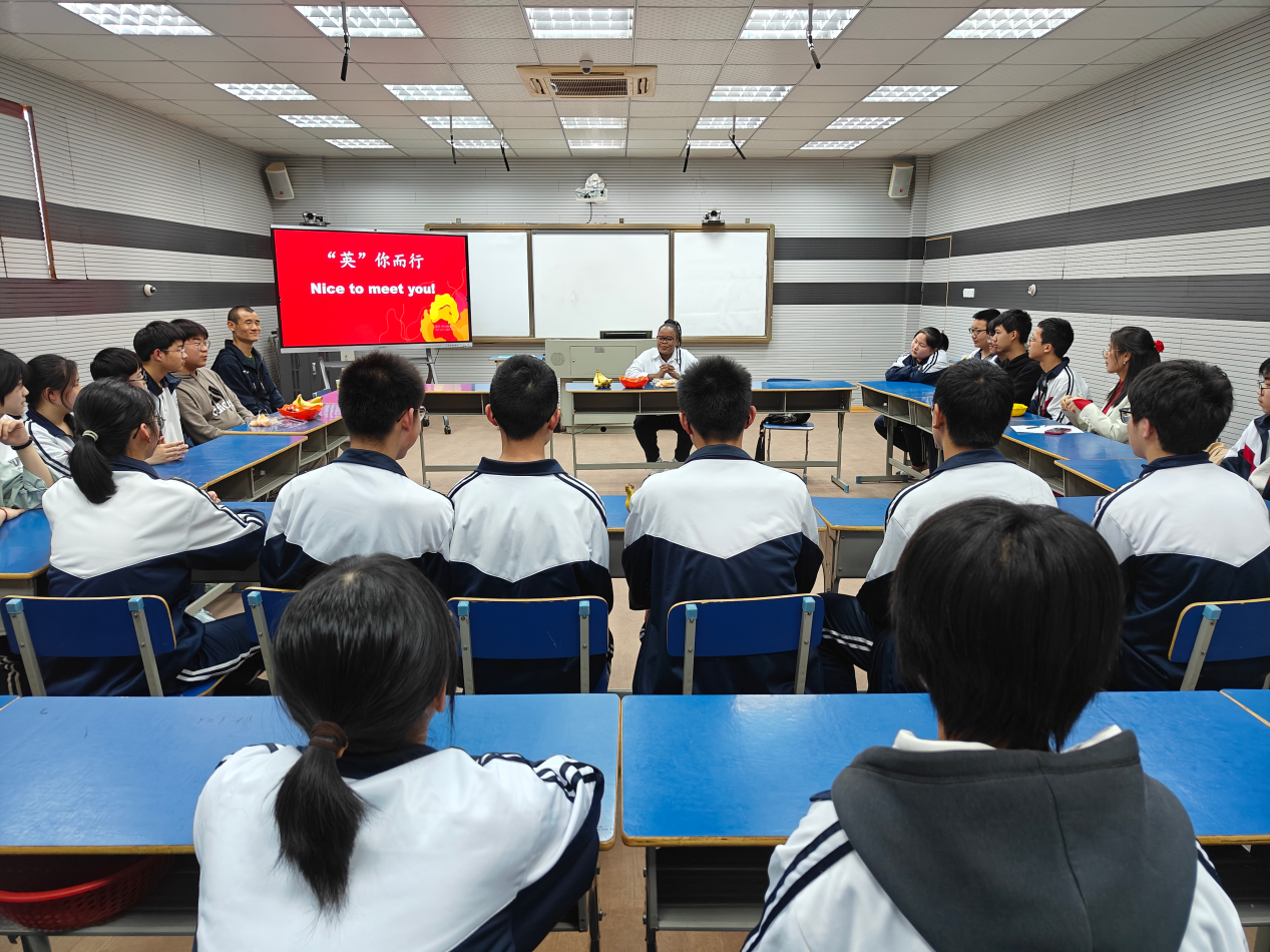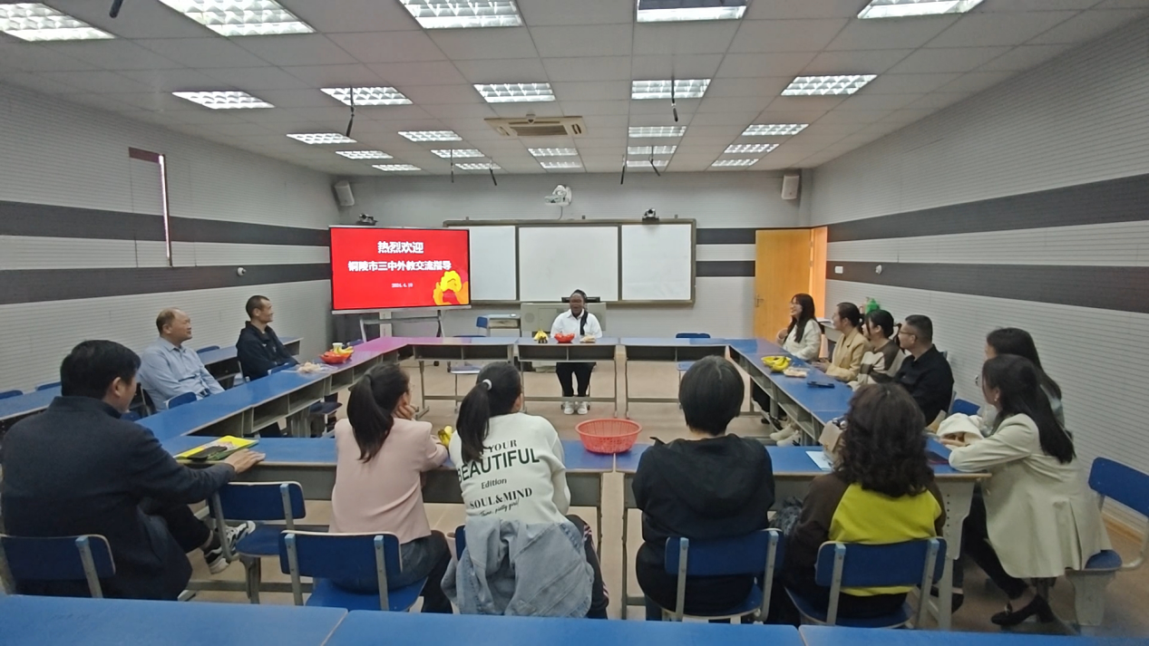 4月10日下午,市三中外教Sammy(南非籍,中文名“赛蜜”)在校党委副书记、副校长王合进,党委副书记张国荣的带领下,赴义安区三中师生进行友好交流。