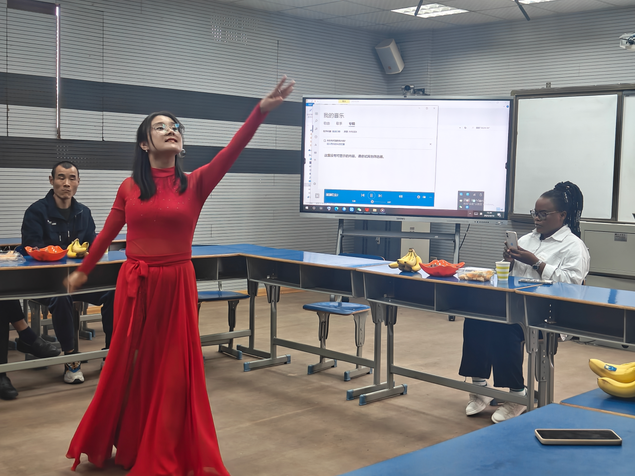 除问答外,孩子们还给外教表演了节目,外教倾情演唱英文歌曲。