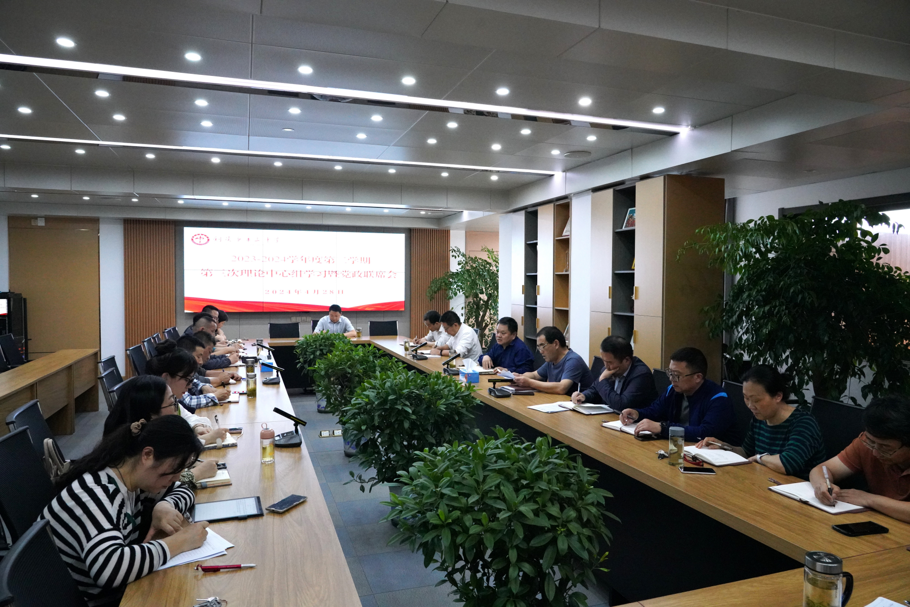4月28日下午,铜陵市三中本学期第三次理论中心组学习暨党政联席会在行政楼五楼第一会议室召开,校党委副书记、副校长王合进,党委副书记张国荣,党委委员、副校长徐松成,党委委员、副校长章学标出席会议,全体中层干部和三位年级领导及党支部书记参加会议,王合进主持会议。