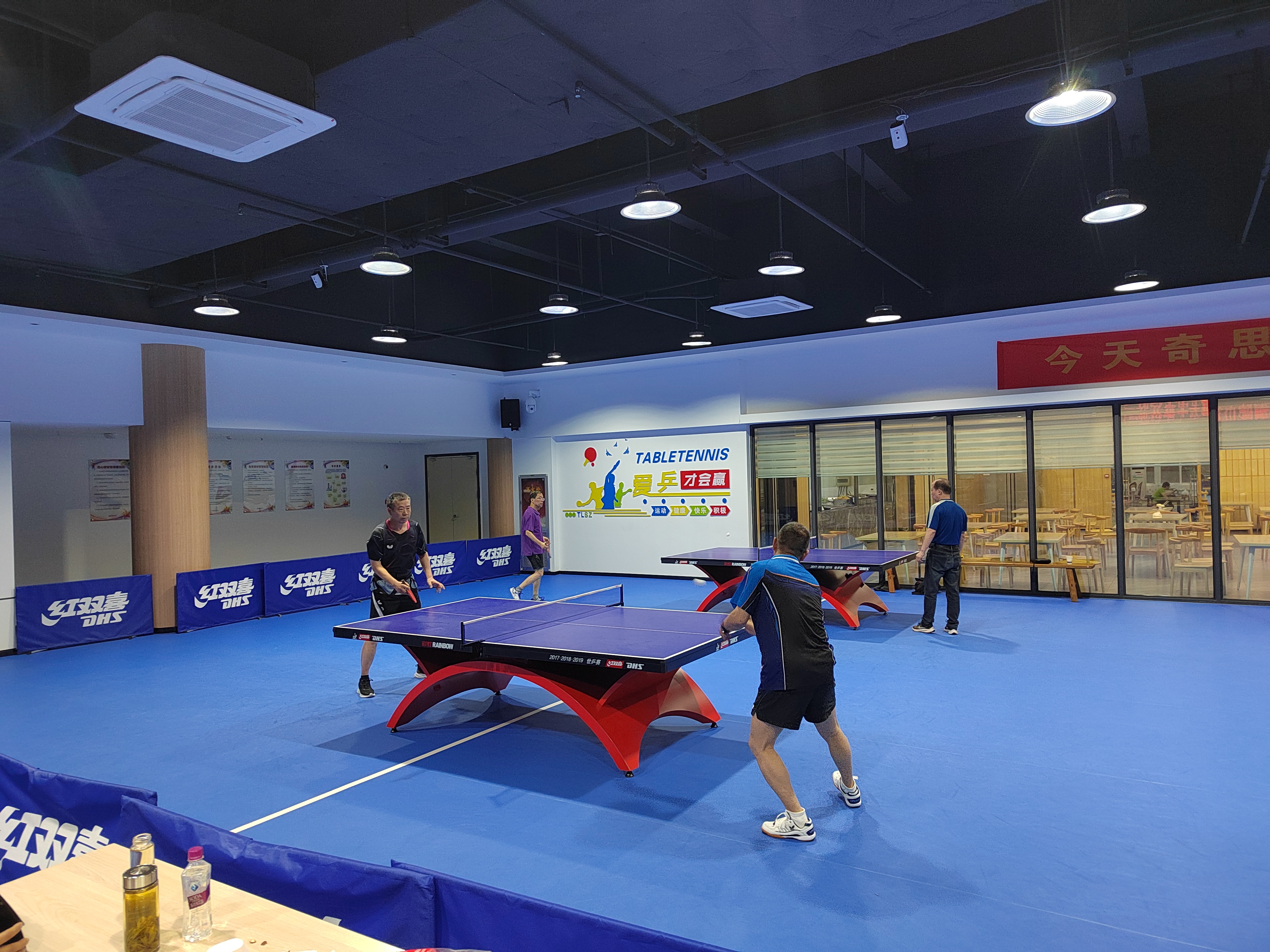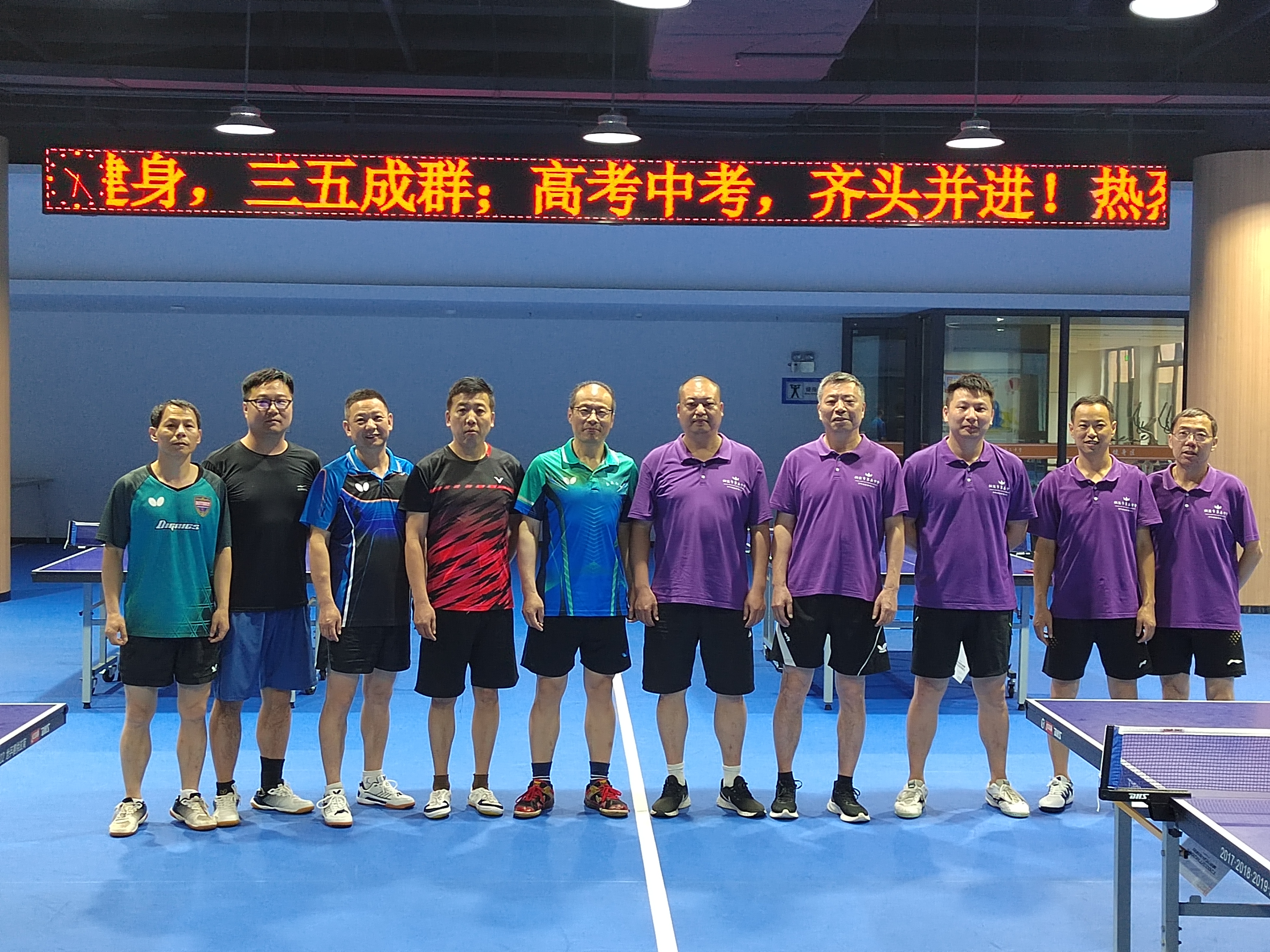 为切磋乒乓球技艺,增进校际间的联络与友谊,2004年5月30日下午,铜陵五中教职工乒乓球队在铜陵五中党总支委员、工会主席瞿大寨的带领下来到我校,与我校教职工乒乓球队在校体育馆师生健身中心开展了一场乒乓球友谊赛。