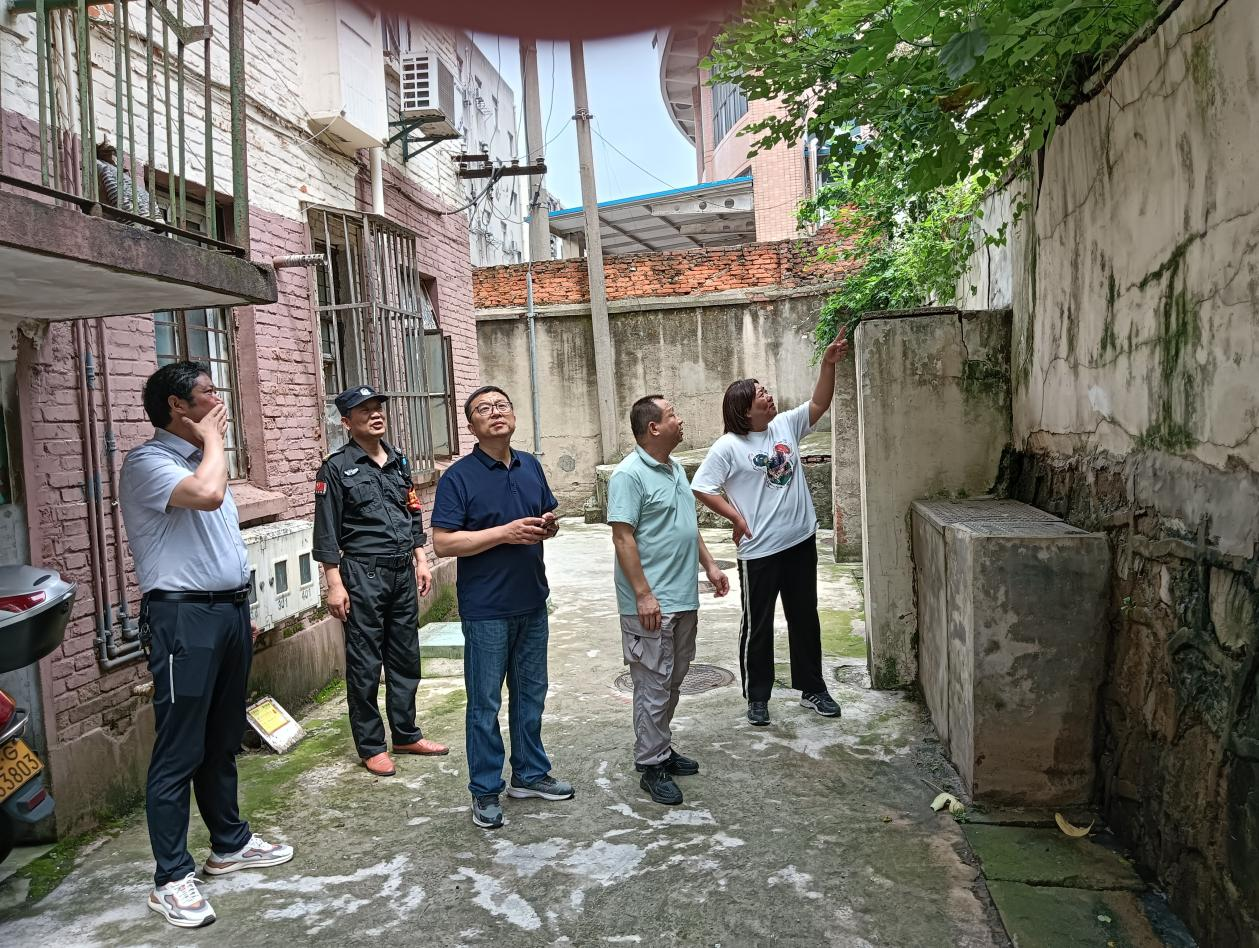 校总务处主任骆为、保卫科科长凌兴民、总务处副主任曾多花和有关工作人员组成的检查组,重点检查了校外住宅、门面房、后大门和校内食堂、宿舍、学校围墙、车棚、雨棚以及低洼易涝区、地下空间及体育场馆等关键部位。