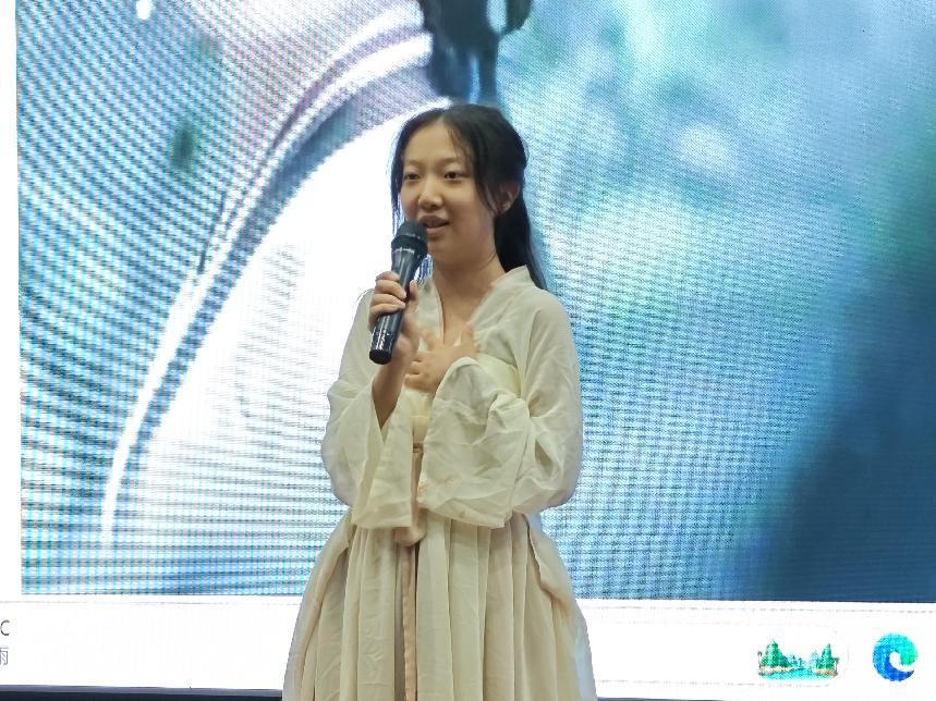 戏曲社指导老师马红助力演出,表演《红楼梦》选曲《葬花吟》。