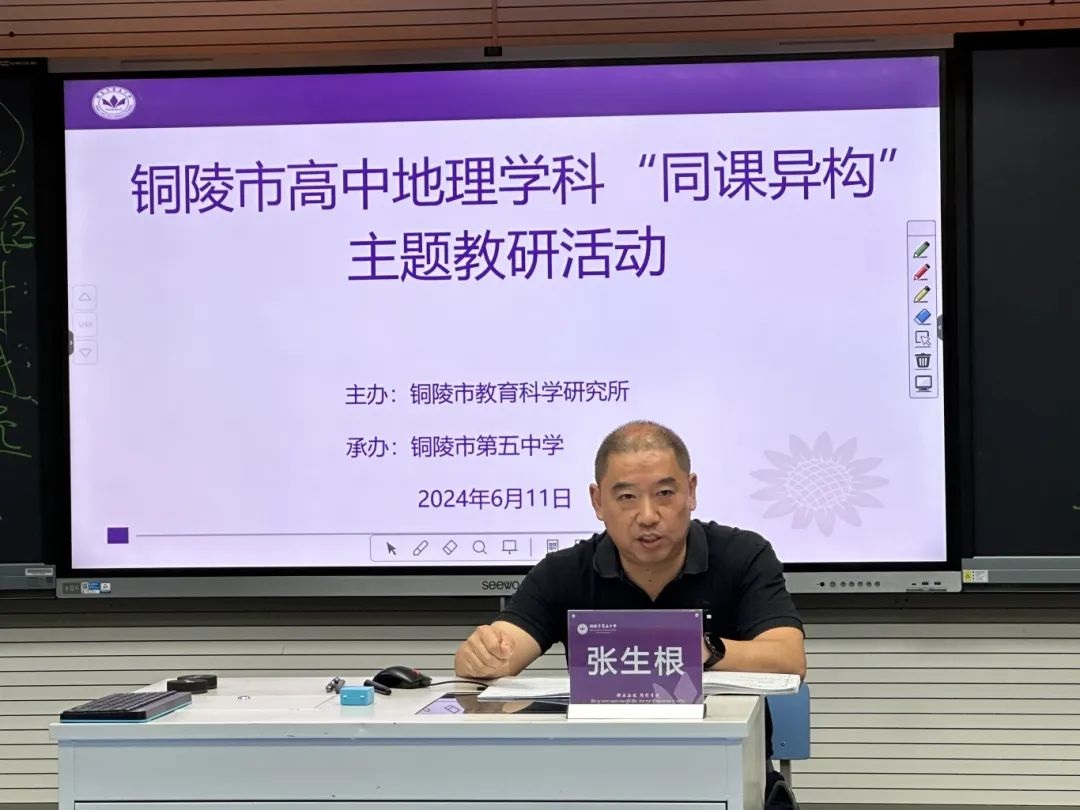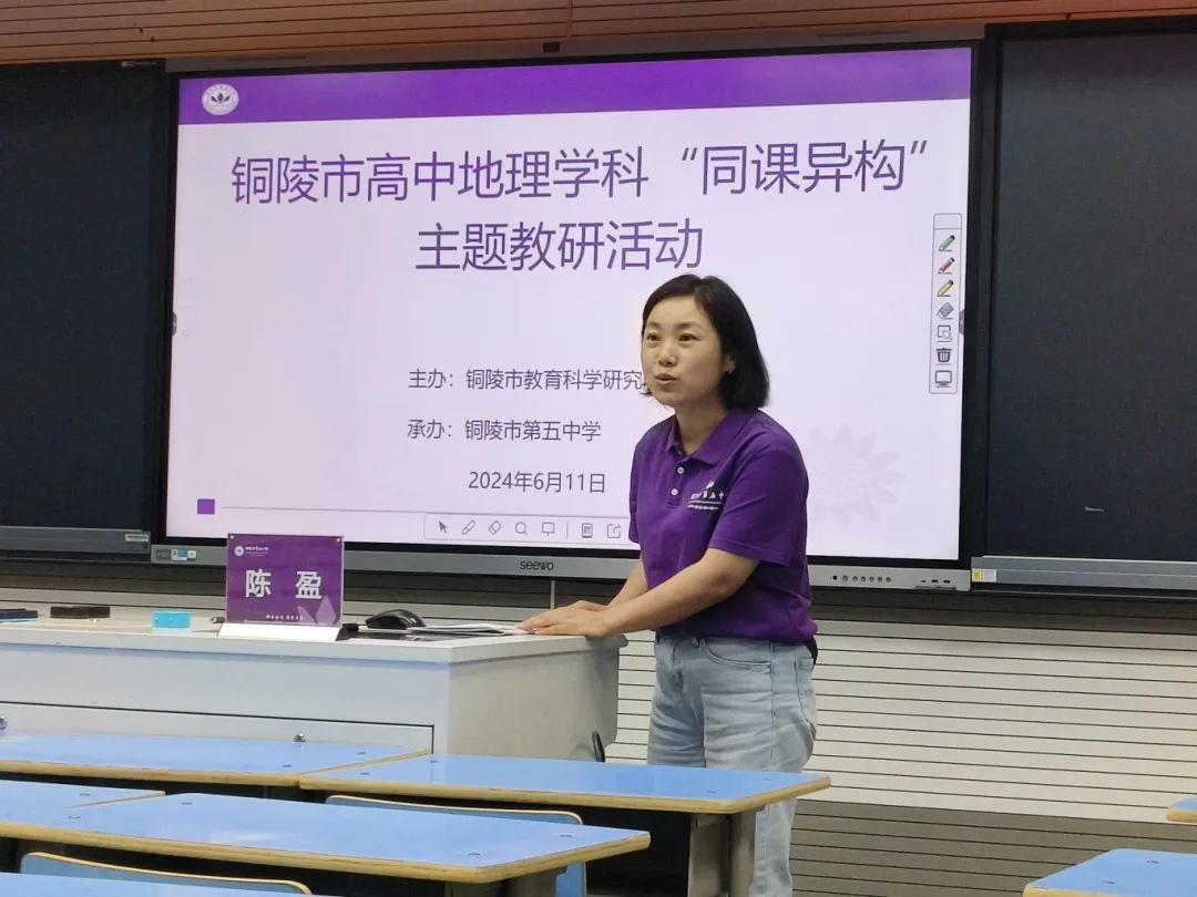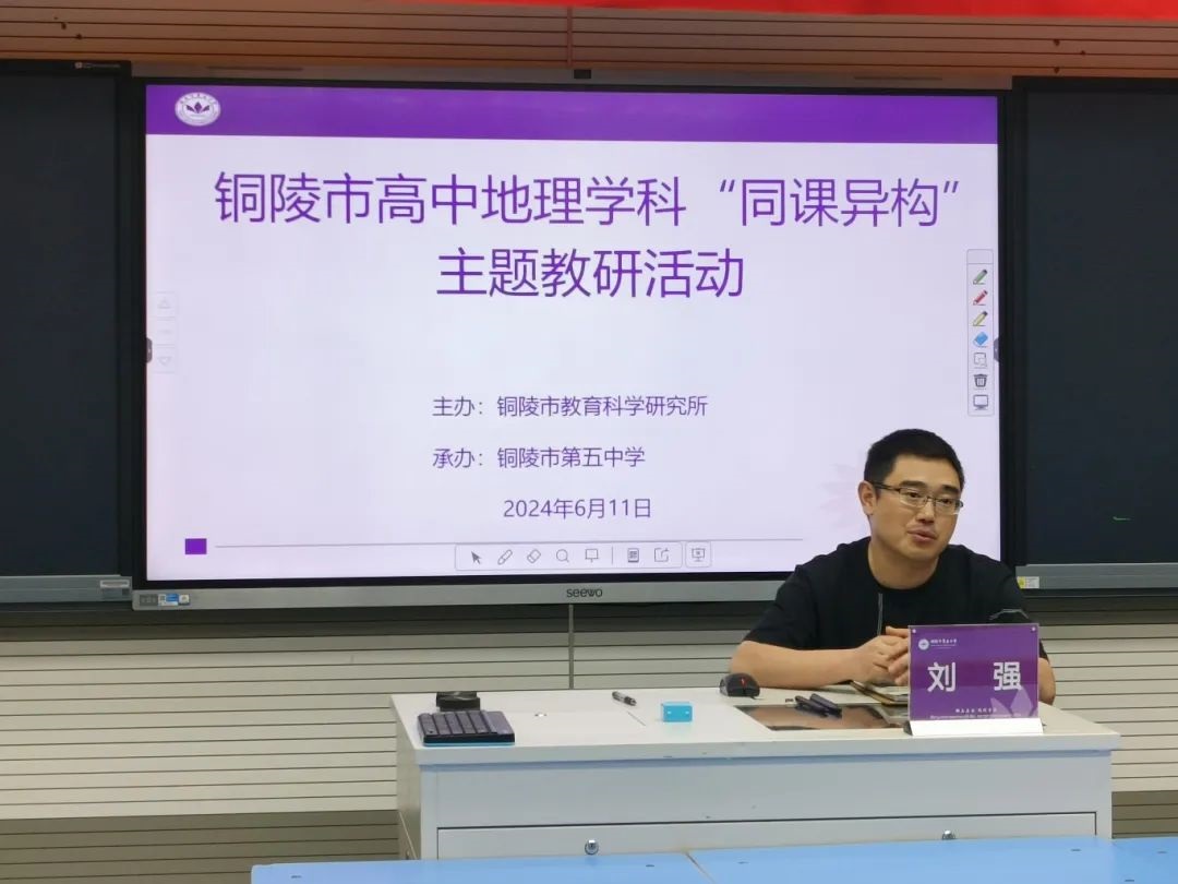 为加强课堂教学研究,提高教学设计与实施的有效性,增进地理教师之间的交流与学习,6月11日下午,铜陵市高中地理“同课异构”主题教研活动在铜陵市第五中学成功举办。我校地理组参加本次活动。