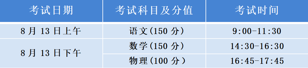 (1)考试科目:报考物理方向的考生考查语文、数学和物理三门学科,报考历史方向的考生考查语文、数学两门学科.