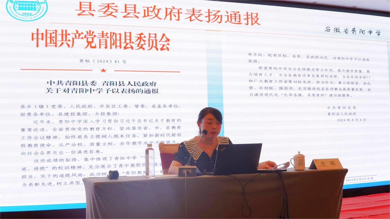 8月9-10日,青阳中学、繁昌一中、铜陵中学、铜陵市第三中学四校研修联盟2024年研修活动在池州市青阳县举行。校党委副书记、副校长王合进和来自青阳中学的党总支书记、校长曹文斌,繁昌一中党总支书记祝永宏、校长崔纪华,铜陵中学党总支副书记刘学文及我校副校长徐松成出席会议。根据联盟会议安排,由铜陵三中牵头组织本次教研组、备课组教研能力提升研修活动。