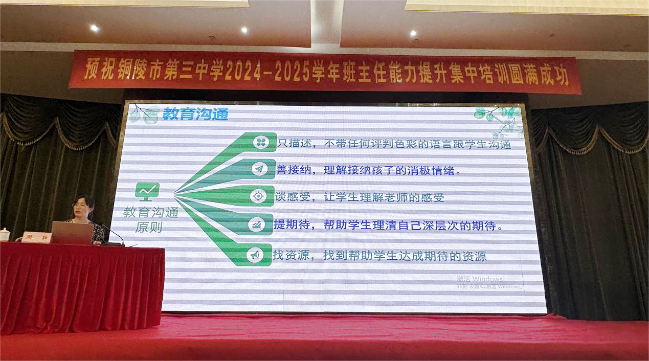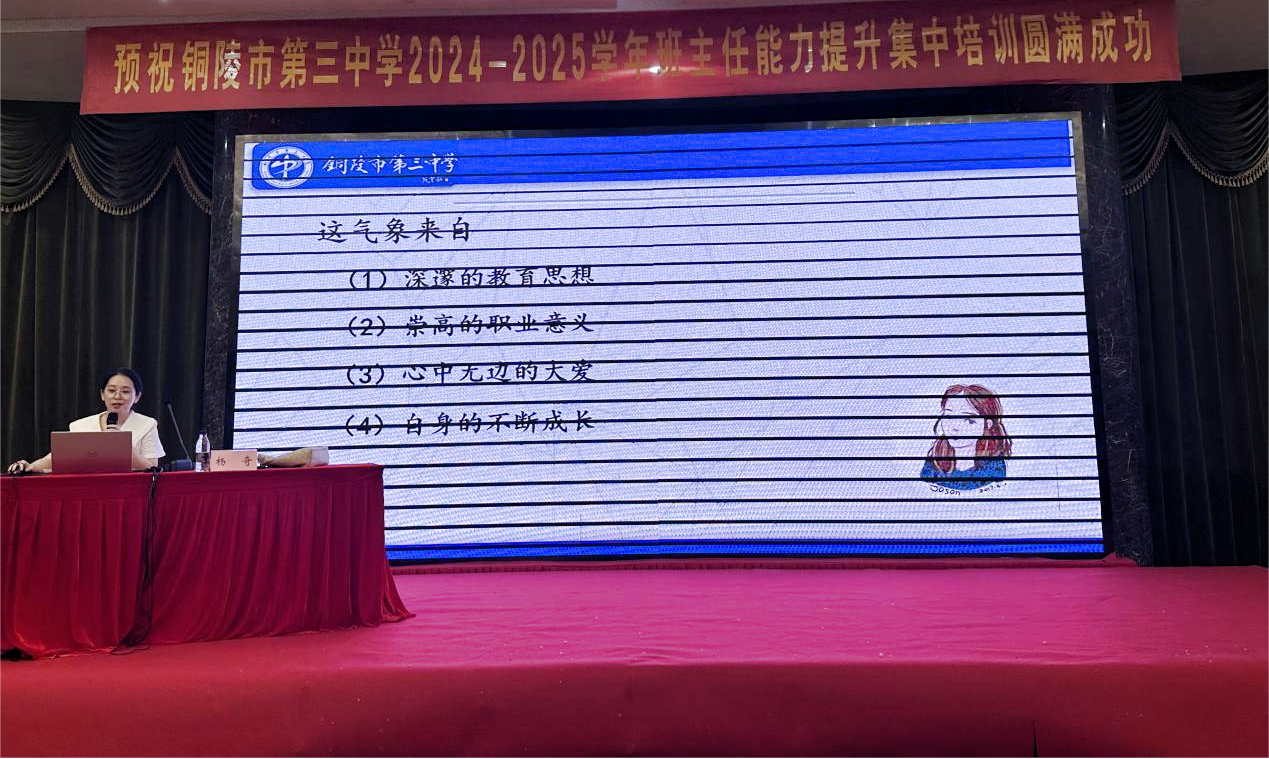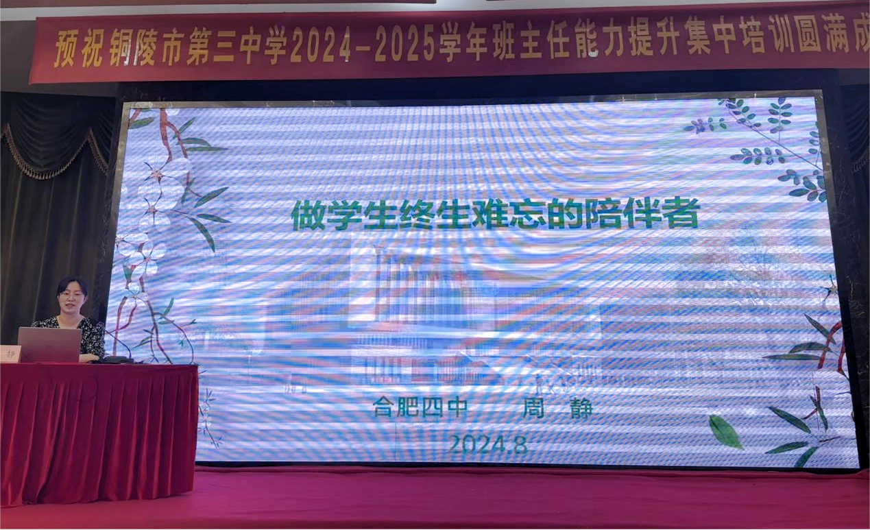 本次培训会议于8月11日上午拉开帷幕。第一场培训会上,我校邀请到了合肥市第四中学政治名师,安徽省青年岗位能手,安徽师范大学师范类专业暑期小学期特聘教授周静老师为我校班主任进行指导讲学。培训由政教处副主任陈蕾蕾主持。