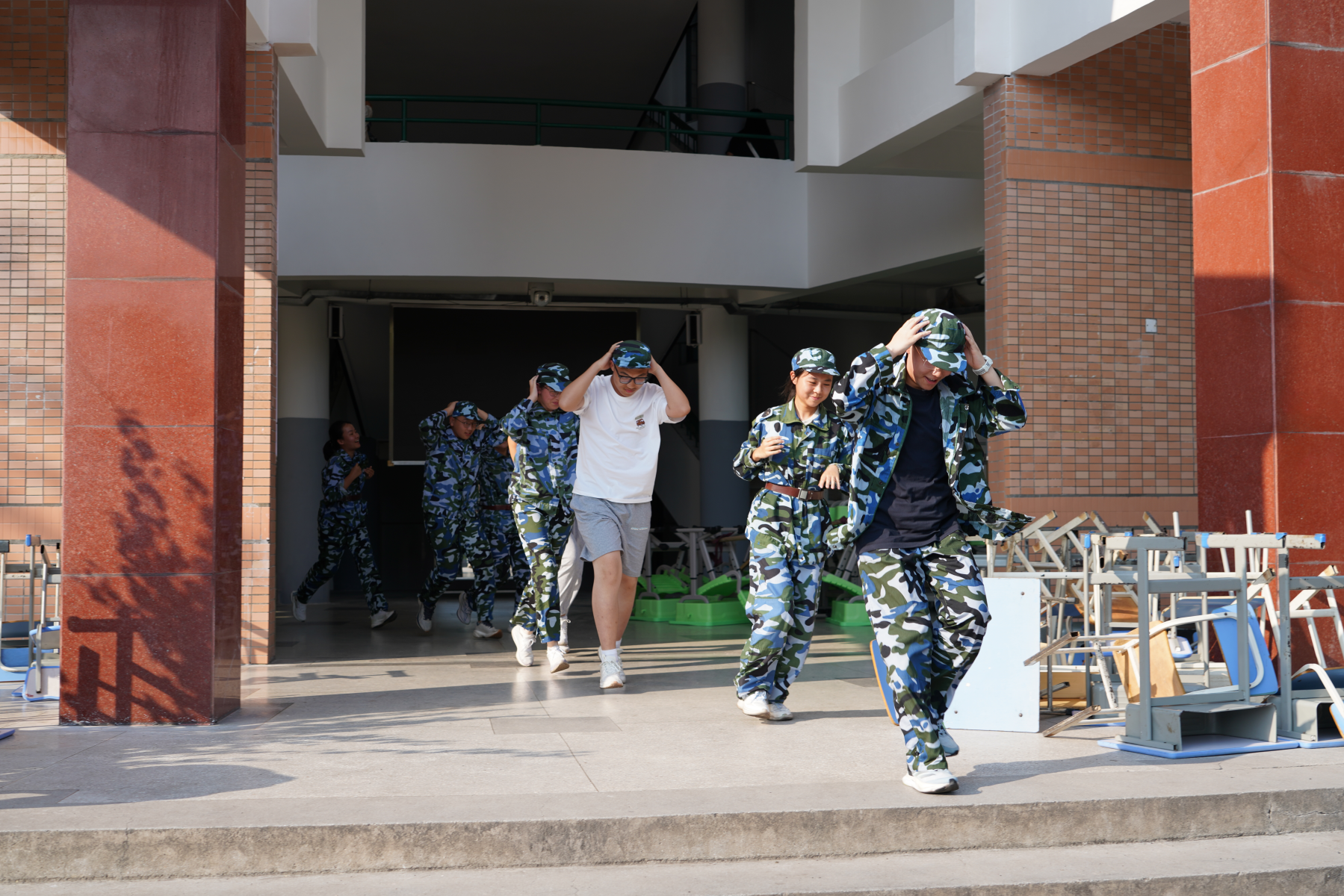 下午16:30分,随着警报声响起,紧急疏散演练正式开始。同学们在军训教官和班主任的疏散下纷纷双手抱住头部,身体微弯前倾,按照楼层消防通道和安全疏散指示牌进行快速有序撤离。到达指定操场集结后,各班军训教官立即清点人数,检查有无受伤人员,及时向总教官进行了汇报。
