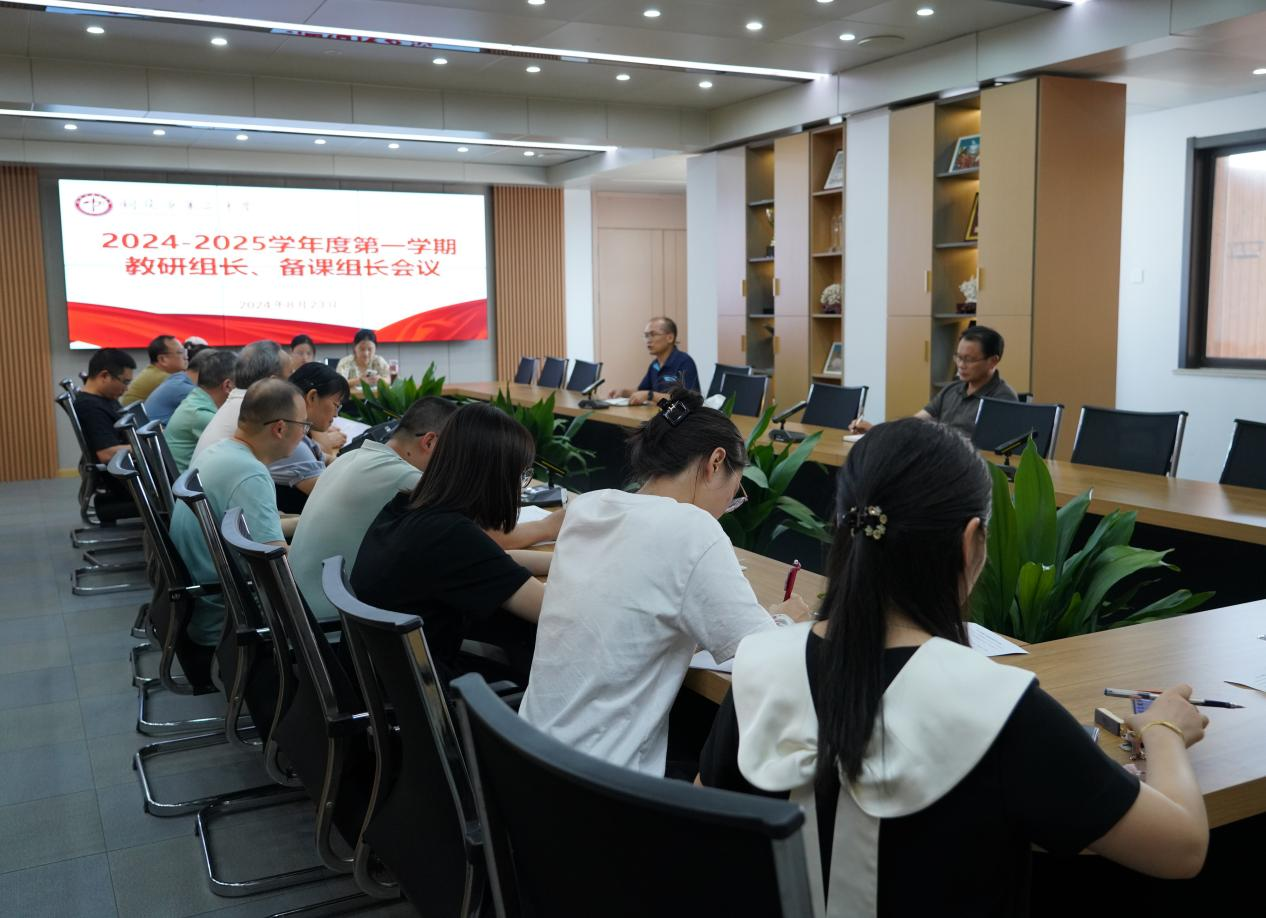 8月23日上午,我校在躬行楼五楼会议室召开新学期教研工作会议。校党委副书记、副校长王合进,教务处主任钱军,教务处副主任丁学智、教科室副主任苏科,全校各学科教研组长和备课组长出席会议,会议由丁学智主持。