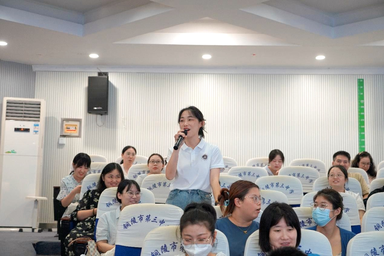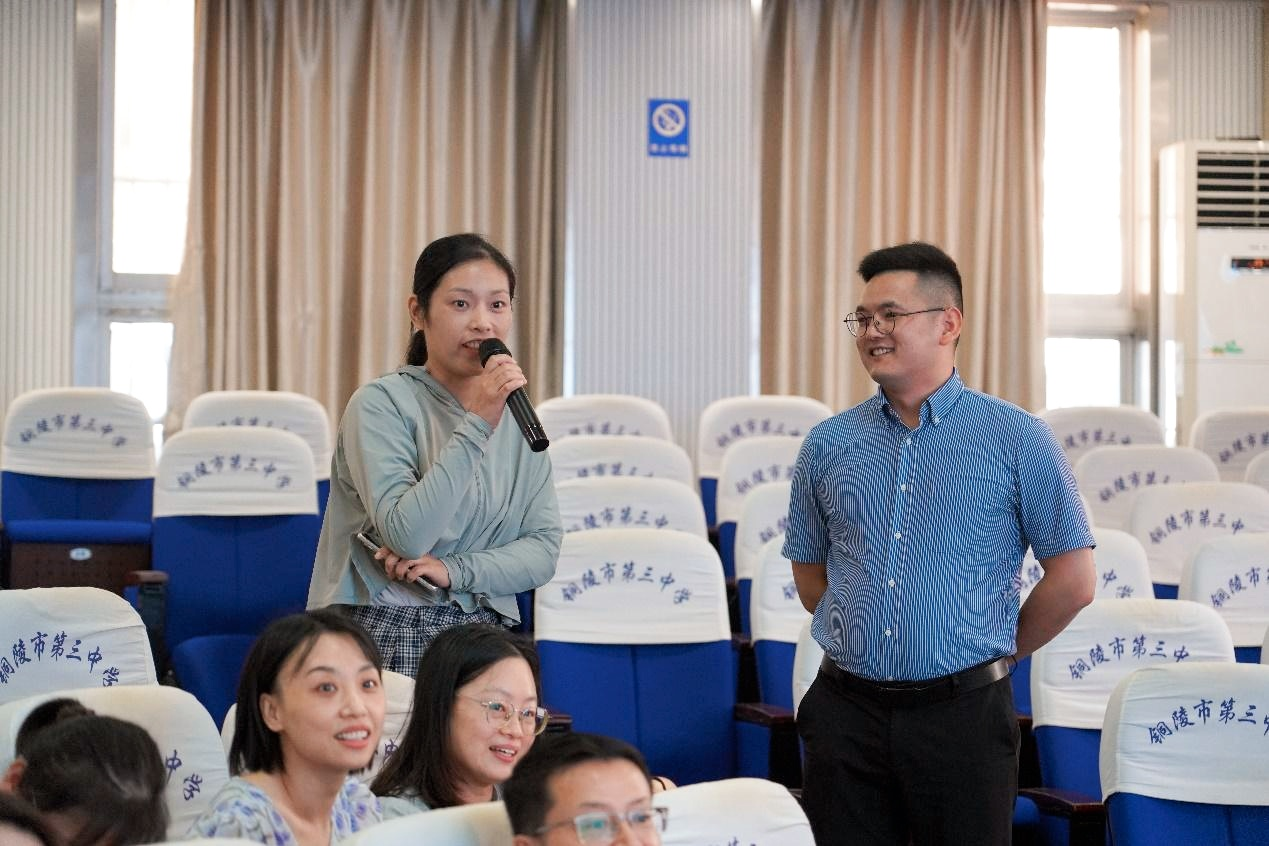 铜陵市第三中学英语教研组长程丽萍做了主题为《群"英"荟萃、"语"你同行》的教研工作汇报。在报告中分享了三中英语教研组在落实“立德树人“,深化英语基础教育课程改革所做的努力以及成果。铜陵市兼职教研员铜陵市一中包珺也做了主题为《知行合一、教研无界》的工作总结与工作安排。最后,市教体局教研员章全作总结发言。为本次全市中小学英语教研工作会议画上了圆满的句号。