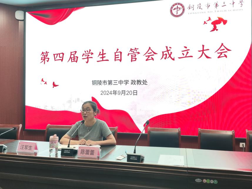 会议最后,陈蕾蕾进行总结发言。她强调自管会成员要发挥榜样的影响力,为三中学子们树立一个良好的形象。自管会不仅要对不良现象进行改正,更要对身边的优秀现象进行记录并宣传。希望自管会的同学们在平常的工作中要发挥团队精神,积极创新,团结友爱,遇到问题要及时沟通,密切配合学校的工作,为学校的决策提供参考。
