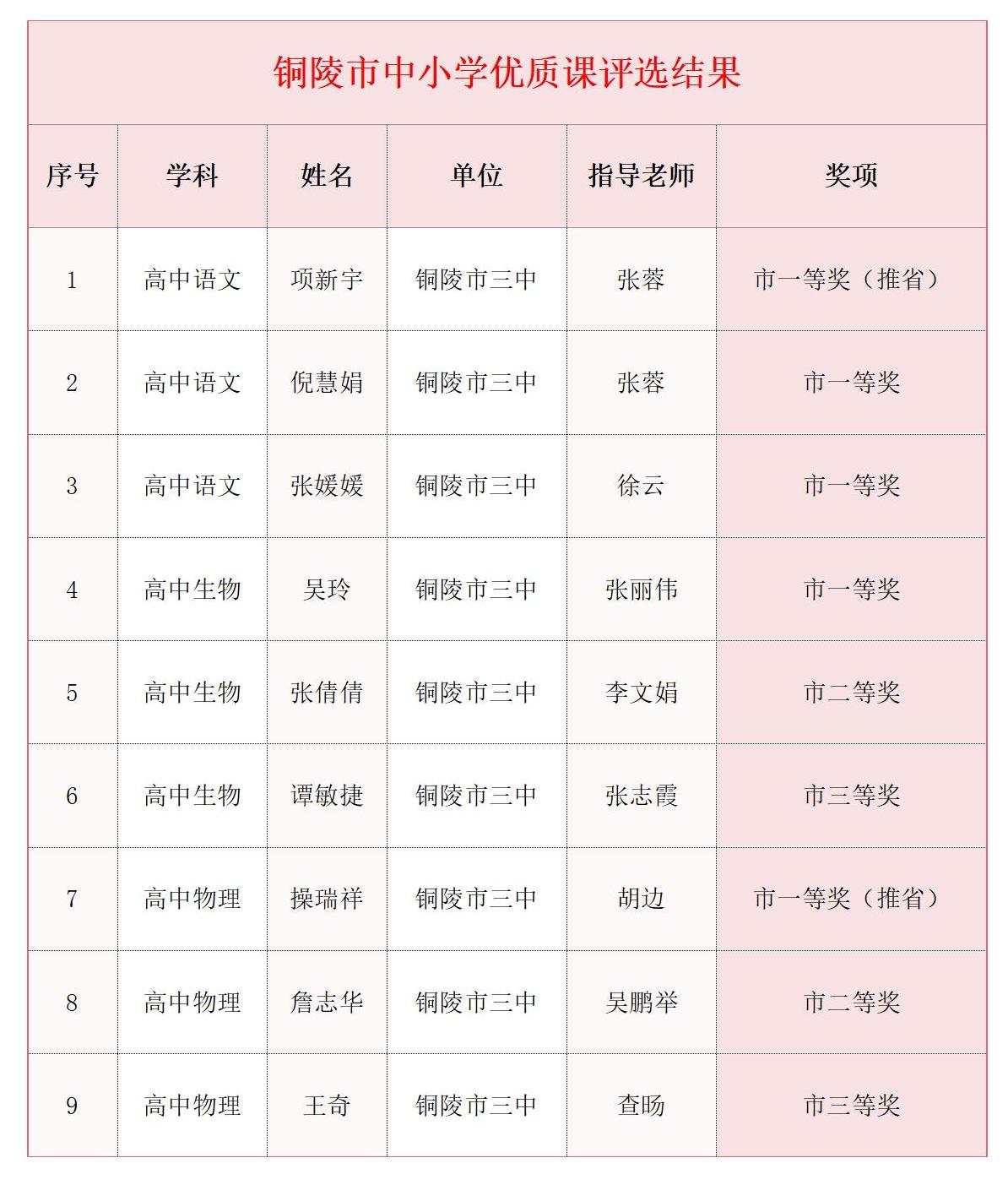2024年铜陵市优质课评选结果近日揭晓。本次优质课评选活动吸引了众多中小学教师的积极参与。参赛教师们围绕课程内容、教学方法、教学效果等多个维度展开激烈竞争,展示了各自的教学特色和创新成果。值得一提的是,我校多位教师在此次评选中取得了优异成绩,向我校所有获奖教师及其学科团队致以最热烈的祝贺!