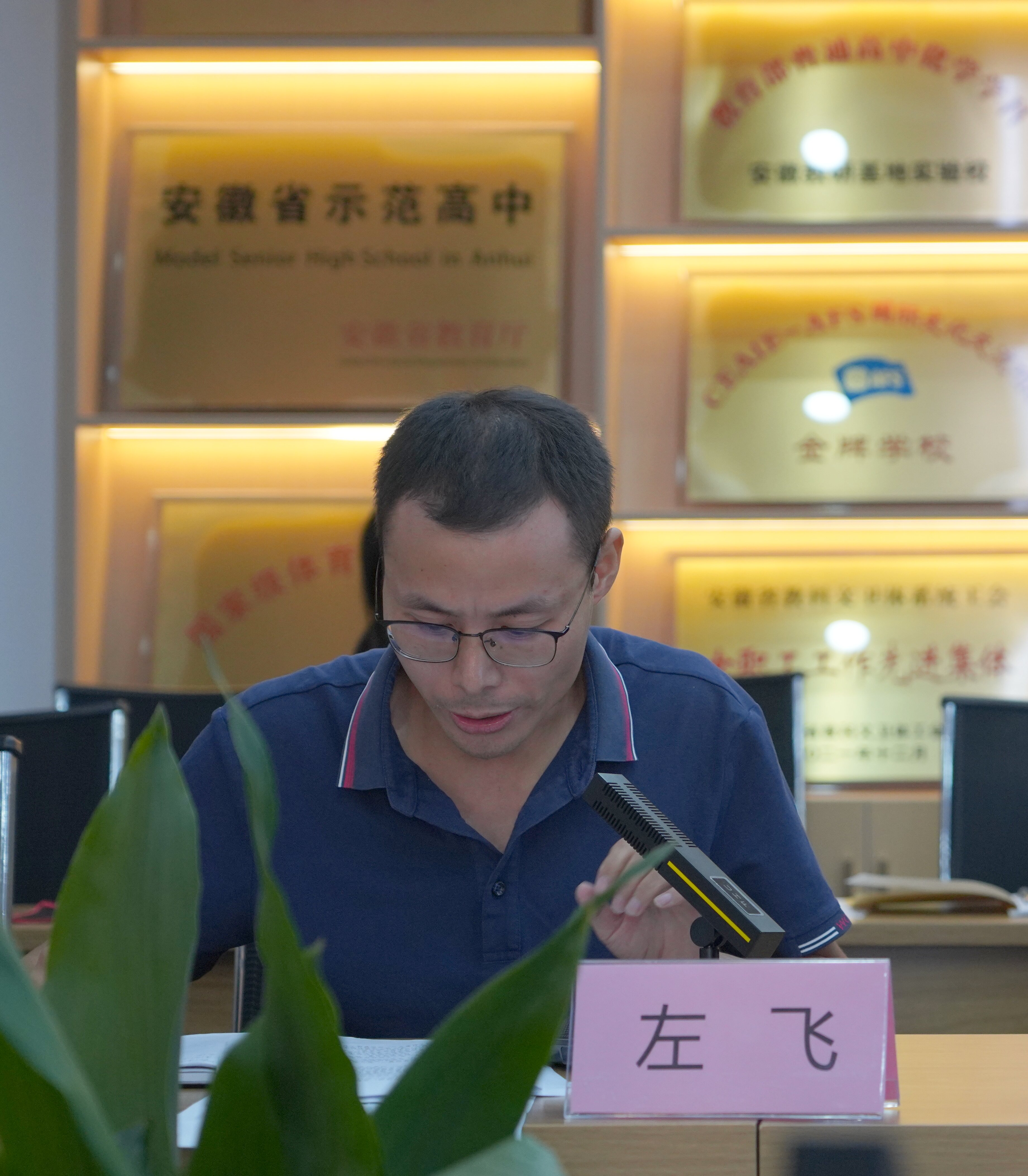 政教处副主任、高三级部主任左飞详细汇报了我校高三的备考情况及拔尖人才培养的创新举措。校党委书记王合进,党委副书记、校长张尤俊就学校教育教学、青年教师培养等方面分别作补充汇报。