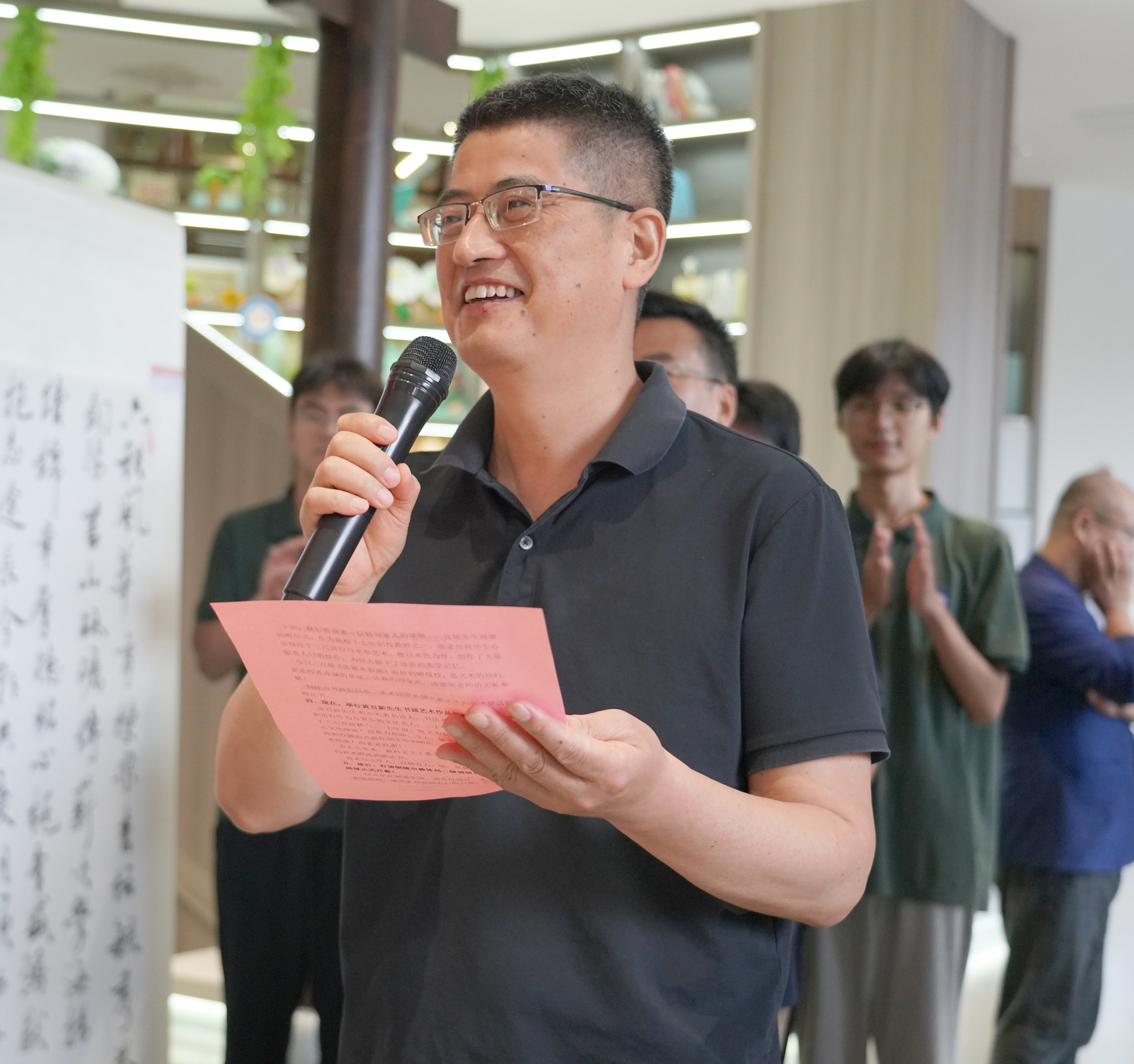 仪式现场,我校校党委委员、工会主席梁波简要回顾美育作品征集筛选、展区规划,与来自铜官区、义安区、郊区等多所中小学联展筹备的历程,让这场展览超越了单个学校的范畴,成为全市中小学校美育一体化的生动实践。不同学校、不同风格的作品汇聚一堂,如交响乐般奏响了铜陵美育的多元乐章。同时,他详细介绍铜陵三中美育中心开展的美育课程、社团、跨校美育教研等常态化活动,展现了学校以美育浸润学生成长的扎实实践。