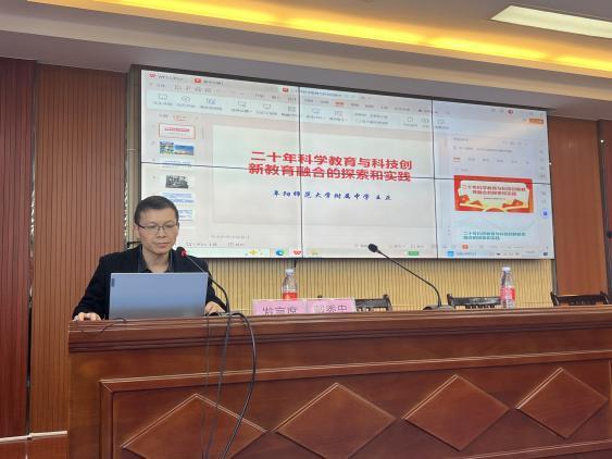 在稍后的经验分享环节,来自山东省淄博第四中学、天津市耀华中学红桥学校、浙江省教育科学研究院附属小学、湘潭市雨湖区九华和平科大小学四所全国第50协同组成员校的代表,先后分享了各校在课程建设、教学模式、资源整合等方面的创新探索。安徽省第8协同组的2所兄弟学校及铜官区科学教育兼职教研员过其莉则从不同层面,交流了区域与学校在推动科学教育落地生根的实践路径。
