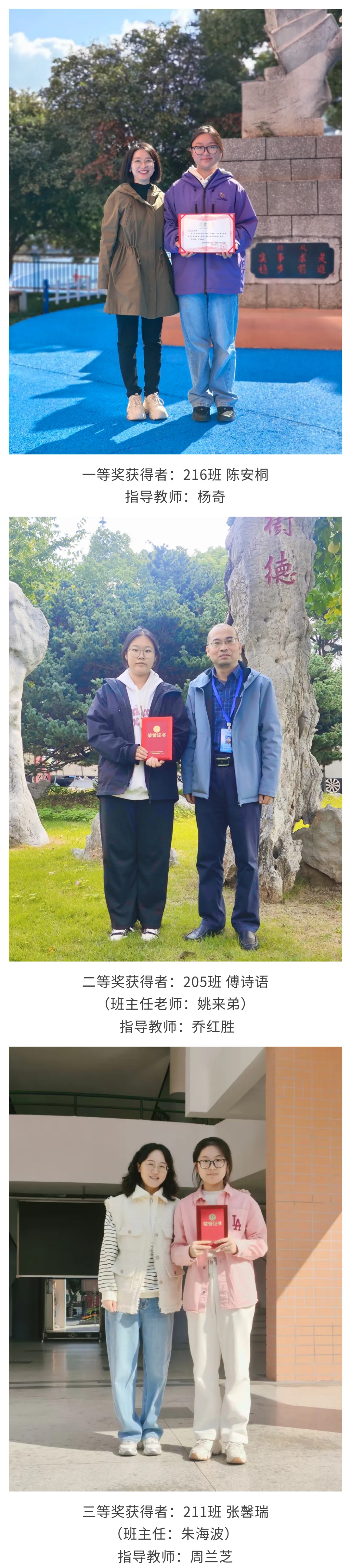 本次比赛的优异成绩,离不开获奖学生的指导老师和班主任的悉心指导。指导教师们充分利用课余时间,围绕爱国主义主题,引导学生从现实生活、历史传承与个人成长中挖掘素材,精心打磨文稿,体现了高度的责任心与扎实的教学功底。在师生共同努力下,参赛作品不仅情感真挚、视角独特,更展现出新时代青少年对民族精神的深刻理解与传承担当。