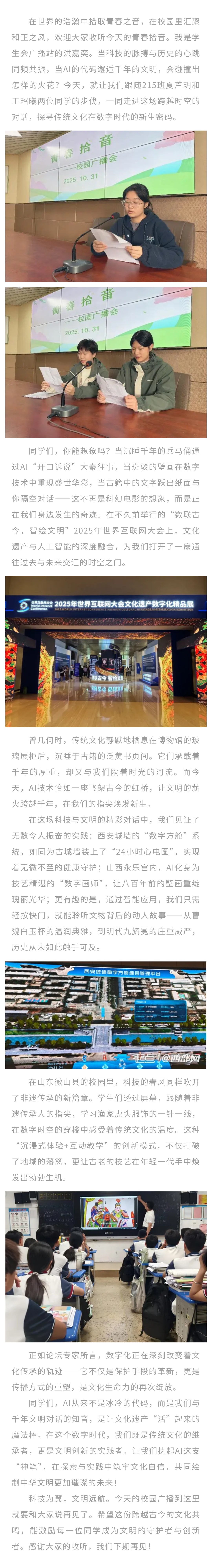 青春拾音|夏芦玥、王昭曦:《AI赋能传统文化,让千年文明“活”在当下》
