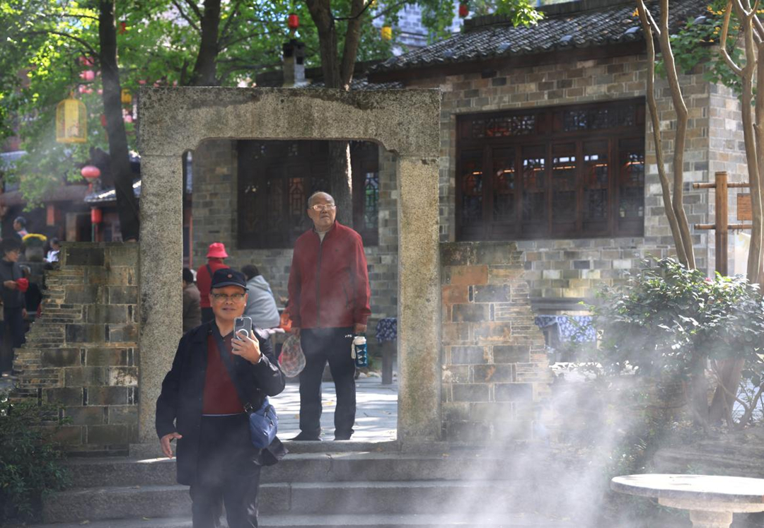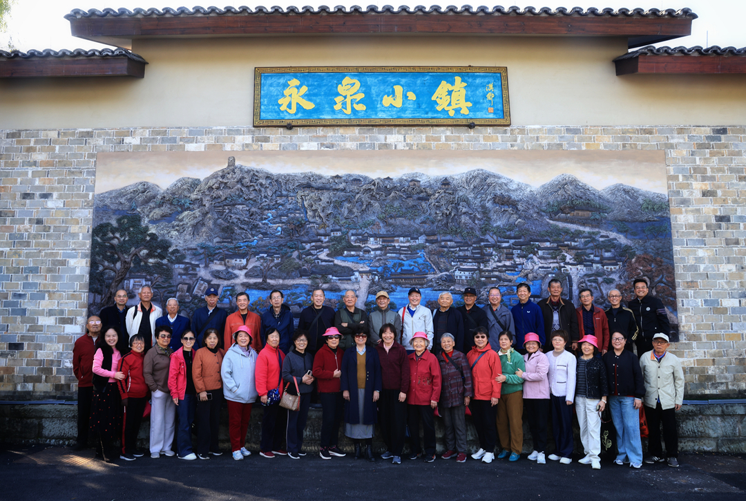 首站抵达永泉小镇,老教师们漫步于青石板路,穿行于亭台廊榭之间。飞檐轻挑,小桥流水,处处皆景。大家不时驻足细赏,合影留念,在如画风景中重温岁月静好,焕发精神风采。眼前的一砖一瓦、一草一木,无不承载着这座小镇的记忆与温度,也寄托着我们对家乡未来发展的美好愿景。