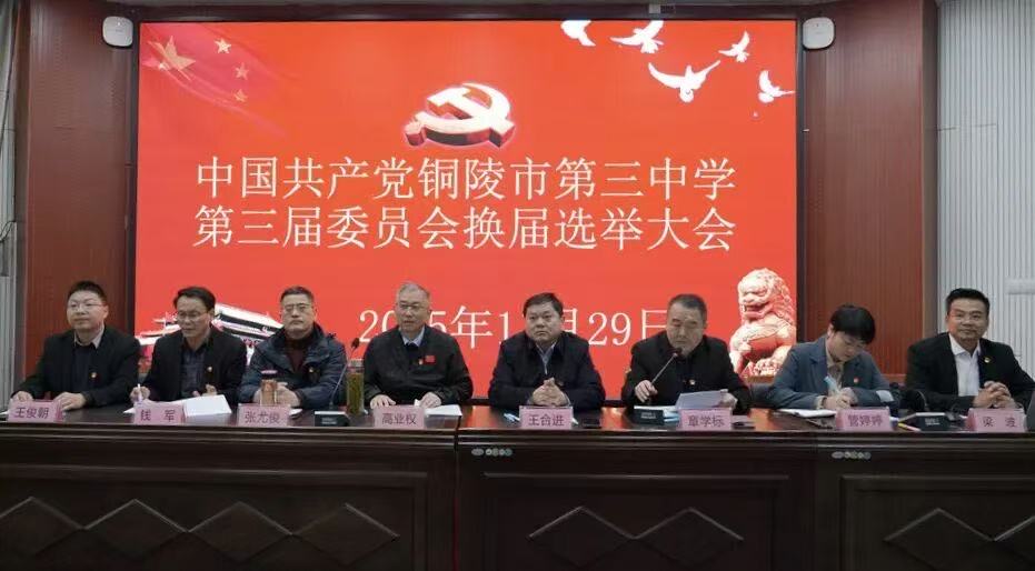 会议期间,新一届中共铜陵市第三中学委员会召开第一次全体会议,选举王合进同志为学校党委书记,张尤俊、章学标为学校党委副书记。