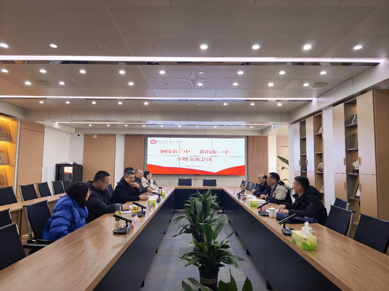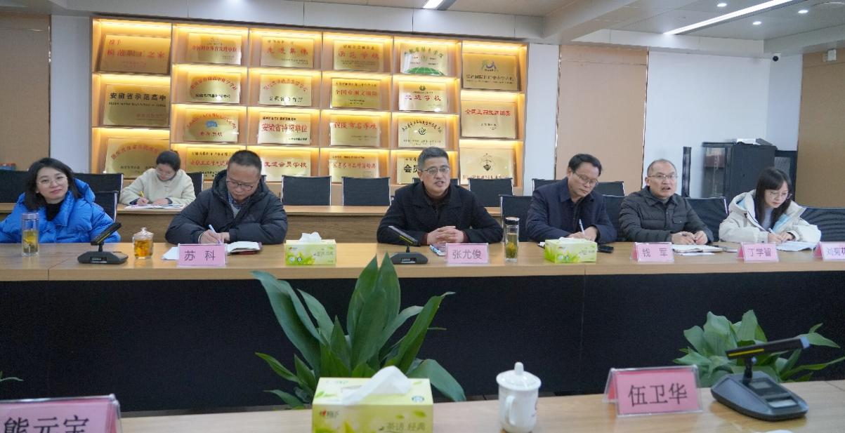 为进一步深化校际交流,共享教育管理经验,共同探索新时代育人模式与教学质量提升路径,12月17日上午,黄山市一中校长伍卫华带领教学管理人员一行来到我校,开展教育教学专题的校际交流研讨活动。校党委副书记、校长张尤俊,校党委委员、副校长钱军,教科室负责人苏科及优秀班主任代表杨奇、刘菊花参加研讨,交流会议由教务处副主任丁学智主持。